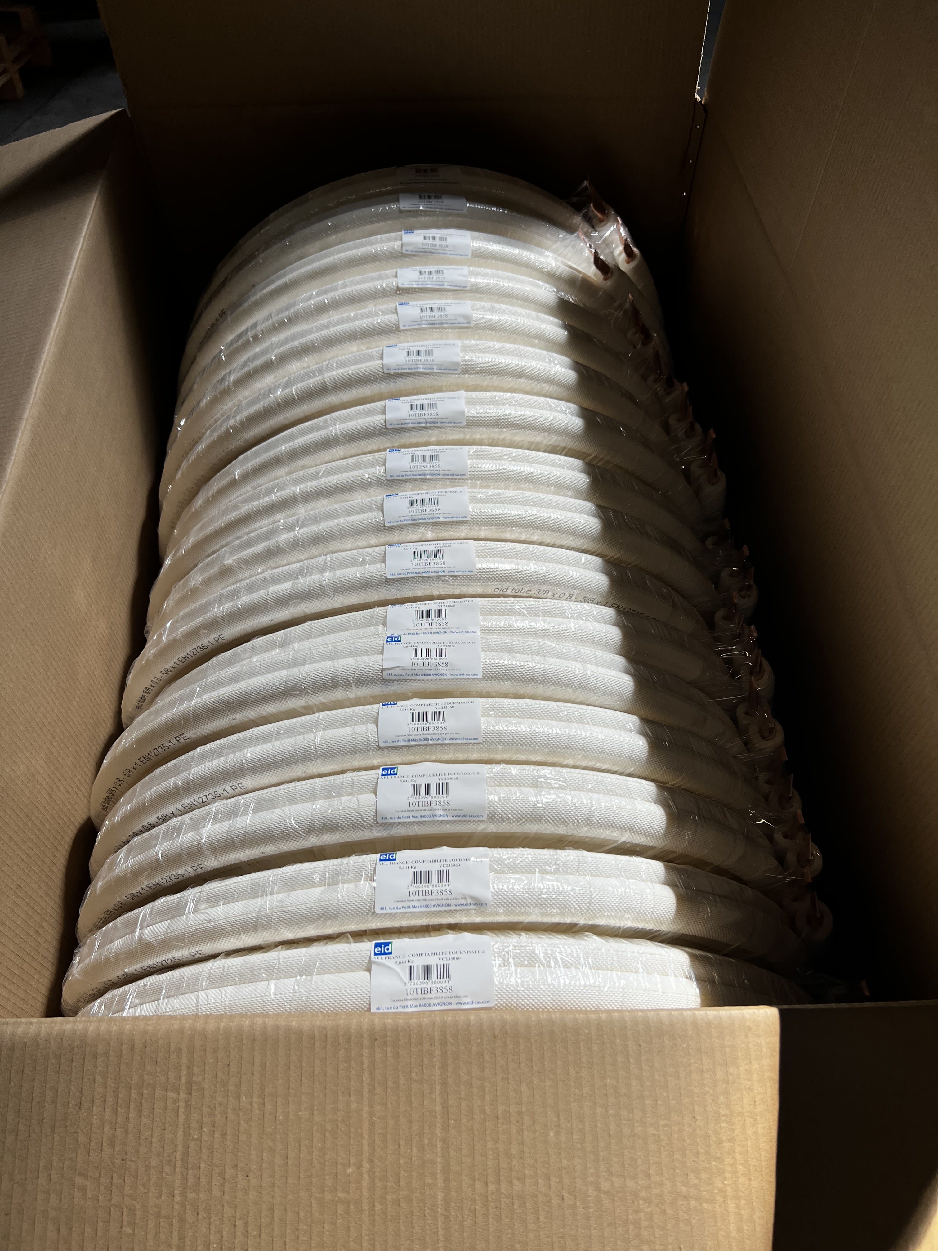 Couronne filmée cuivre 08mm 1/4 isolé PE blanc Bl-s2-d0 (M1) 20m. Liaison frigorifique pour la climatisation/PAC, fabriquée en France.
