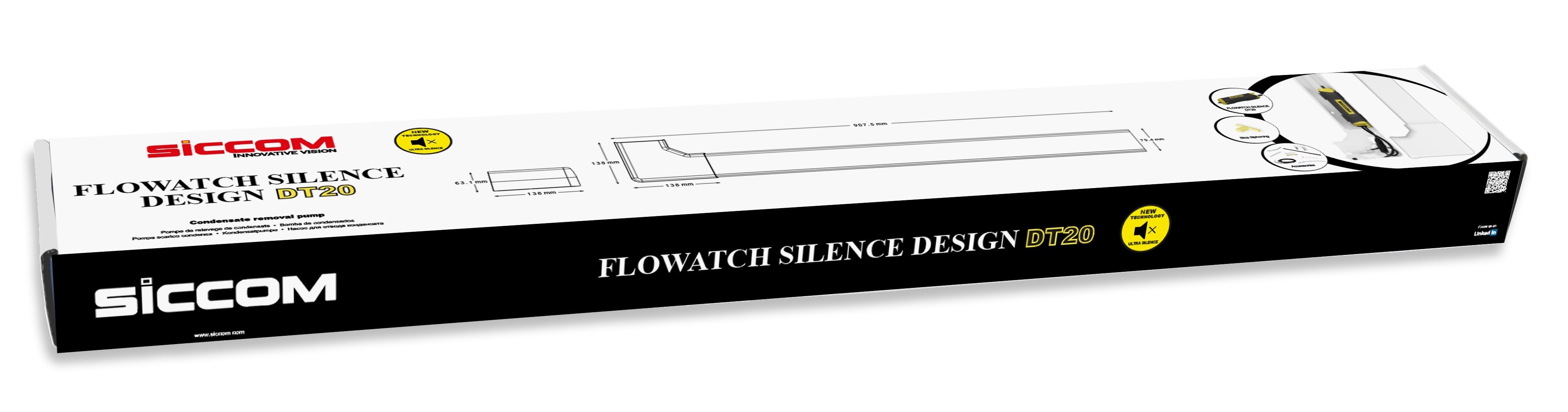 Pompe ap20 20l/h dans goulotte ultra silencieuse 16dBA et compacte. IP24, avec Alarme NF, facteur de marche 100%