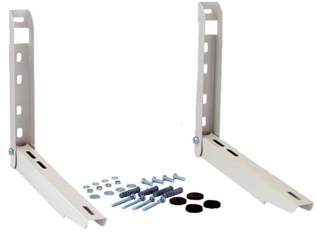 Support mural pré-monté en acier électro-zingué et peinture epoxie RAL9002 avec rondelles anti vibratiles pour groupes extérieurs. Poids max de l'unité extérieure 120kg.