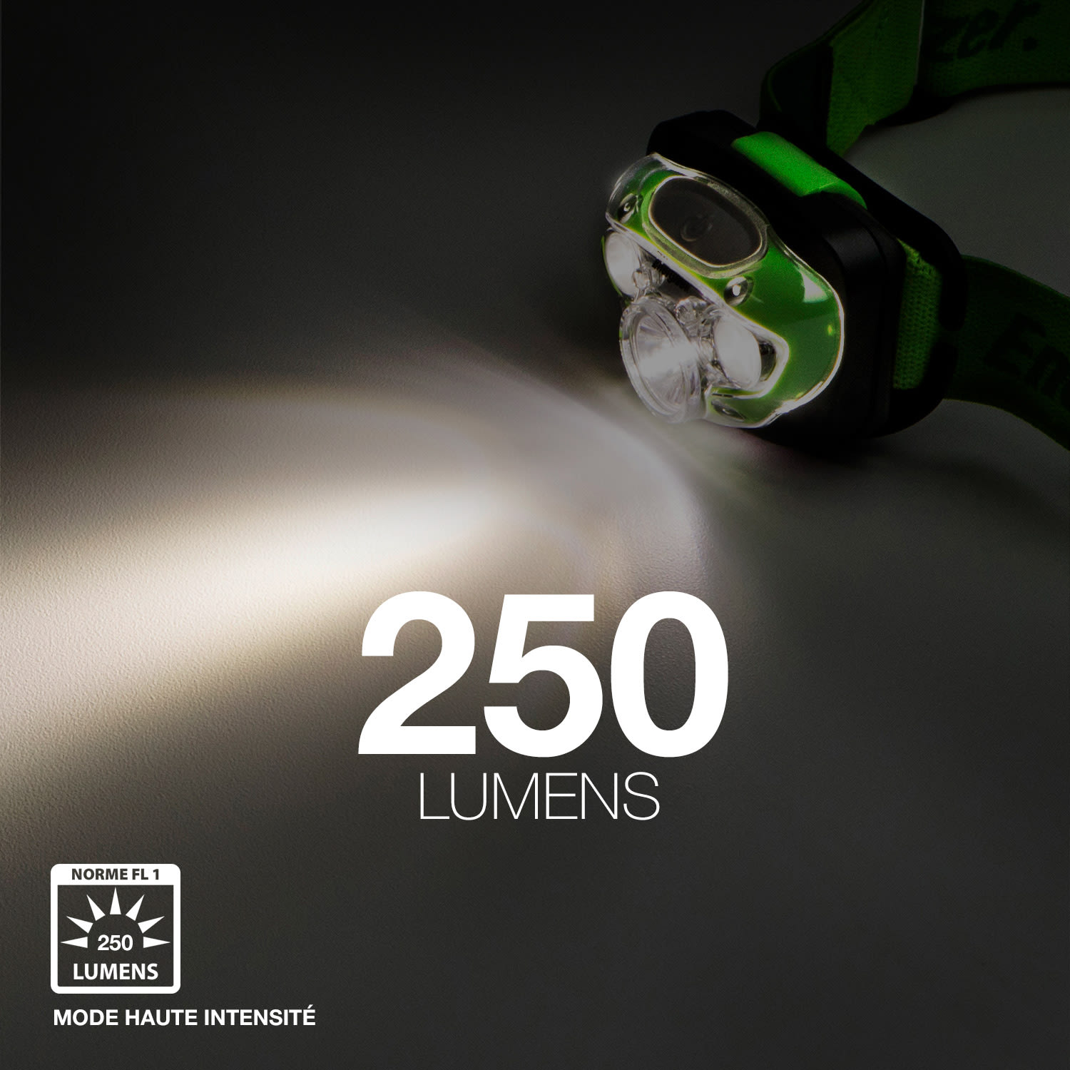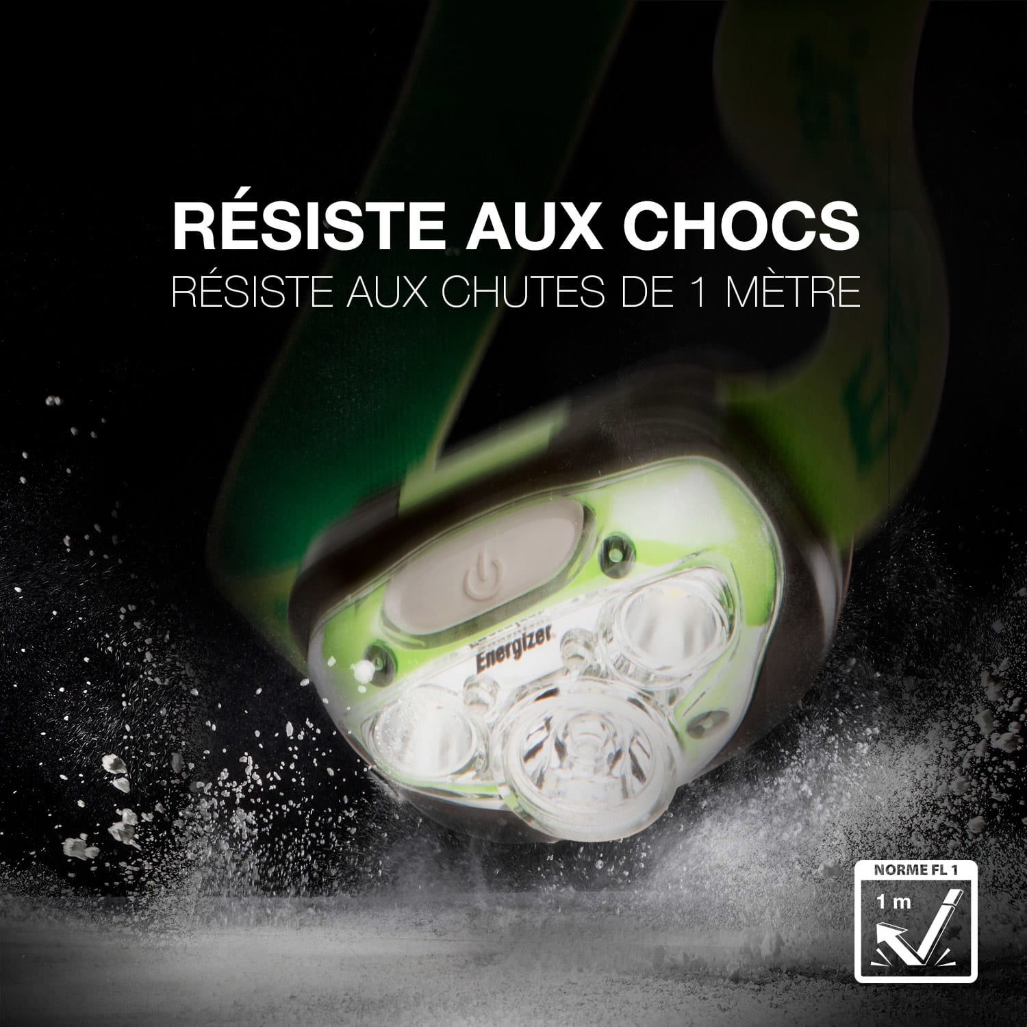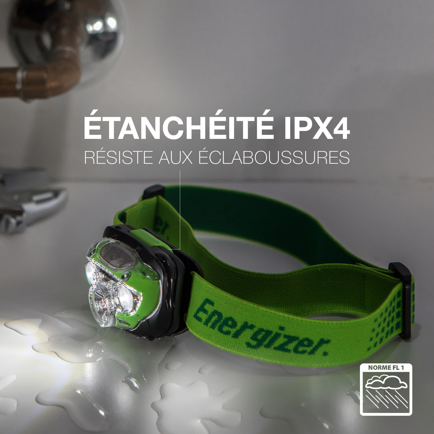 La lampe frontale Energizer® Vision HD+ est idéale pour les activités en extérieur ou de bricolage grâce à son bandeau réglable, son design résistant à l'eau et sa tête pivotante pour diriger le faisceau. Avec sa fonction régulation d’intensité Energizer® Smart Dimming, les utilisateurs peuvent contrôler l'intensité lumineuse de 100% à 10% selon leur besoin et utiliser le bouton d’arrêt rapide afin d’éviter des changements de modes inutiles et ainsi préserver l’autonomie de la lampe torche. Cette frontale possède 7 modes d’éclairage avec différents types de faisceaux, chacun d’eux en modes haute et basse intensités grâce au Smart Dimming : 1 mode faisceau mixte (faisceau large + faisceau concentré) pour un éclairage loin et périphérique, 1 mode faisceau concentré, pour une portée optimale, 1 mode faisceau large pour une meilleure vision périphérique. Elle possède également un mode LED rouge pour une vision de nuit non éblouissante. VisionLa lampe frontale Energizer® Vision offre aux utilisateurs une solution mains-libres performante, avec un éclairage et un faisceau puissants. Ultra confortable, elle possède un bandeau réglable et une tête légère pivotante permettant d'orienter précisément le faisceau. Ses 2 modes permettent un éclairage haute ou basse intensité. La frontale Vision HD est idéale pour les activités en extérieur ou de bricolage.