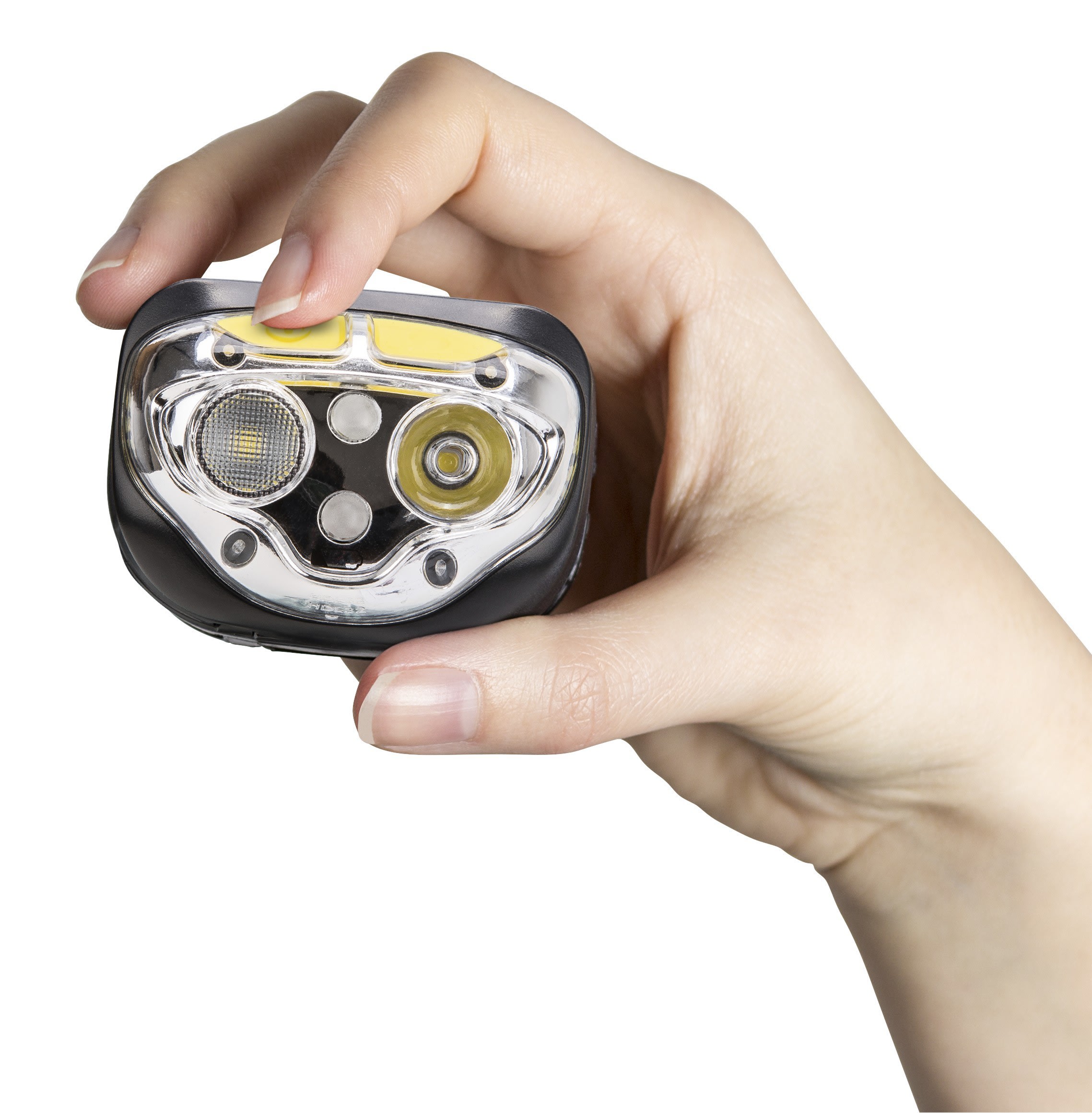 La lampe frontale Energizer® Vision Ultra fait partie de la gamme Energizer® Vision, gamme de lampes torches frontales premium et innovantes. Avec sa fonction régulation d’intensité Energizer® Smart Dimming, les utilisateurs peuvent contrôler l'intensité lumineuse de 100% à 10% selon leur besoin et utiliser le bouton d’arrêt rapide afin d’éviter des changements de cycles inutiles et ainsi préserver l’autonomie de la lampe torche. Cette frontale possède 7 modes d’éclairage avec différents types de faisceaux: 1 mode faisceau mixte (faisceau large + faisceau concentré) pour un éclairage loin et périphérique en haute et basse intensité, 1 mode faisceau large pour une meilleure vision périphérique en haute et basse intensités, 1 mode LED rouge pour une vision de nuit non éblouissante, 1 mode LED rouge clignotant pour signaler sa présence, et un mode LED verte. La Vision Ultra est équipée de la technologie Vision Guard, qui protège la vue en augmentant graduellement l’intensité de l’éclairage (15s). Pratique, lorsque les piles sont faibles, un voyant lumineux clignote. Grâce à son bandeau réglable, son design résistant à l'eau et sa tête pivotante pour diriger le faisceau, la frontale Vision Ultra Energizer® est idéale pour les randonnées, le bricolage ou des activités professionnelles.