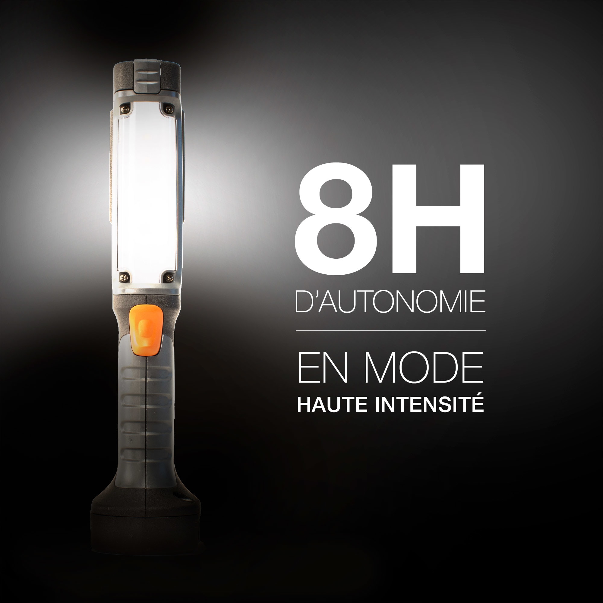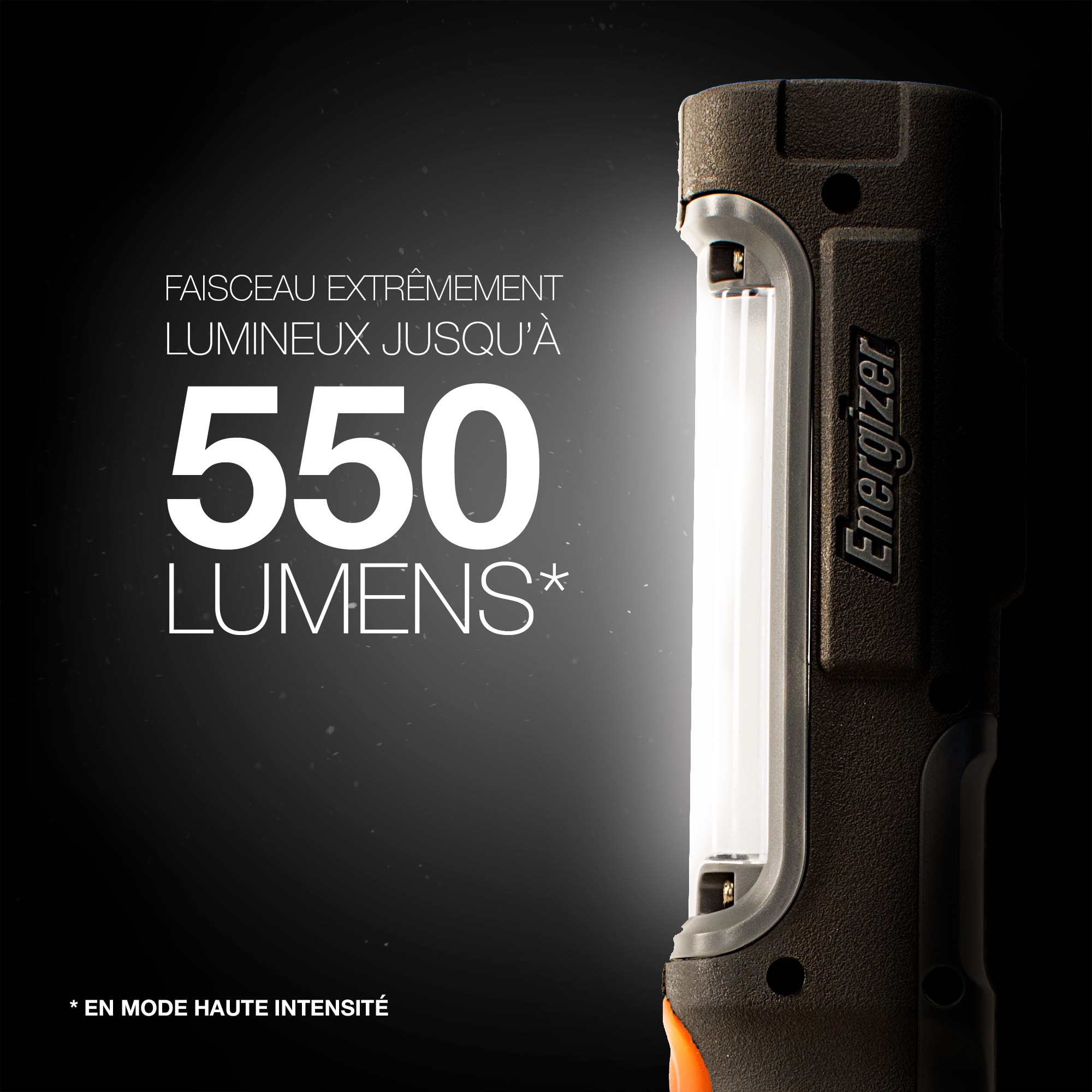 La Baladeuse Energizer® HARDCASE® PROFESSIONAL® est idéale pour les tâches professionnelles. Cette baladeuse permet un éclairage diffus à 180° afin d’éclairer une large zone. Ses deux aimants puissants, son crochet rotatif rétractable et sa base large permettent un usage mains-libres. Elle possède 2 types d’éclairage : haute et basse intensité, afin de favoriser puissance et portée lumineuse ou autonomie. Sa fonction de réglage intelligent permet de personnaliser l’intensité lumineuse et d’économiser de l’énergie pour une plus grande autonomie, pouvant couvrir 40 heures de travail (en mode basse intensité). Robuste, cette torche est équipée de lentilles incassables, résiste aux intempéries (IPX4), aux chocs et aux chutes de 7 mètres, soit d’un bâtiment de 2 étages. Elle possède un design ergonomique et un revêtement en caoutchouc pour absorber les chocs, et est équipée d’un large bouton poussoir on/off adapté pour une utilisation avec des gants.