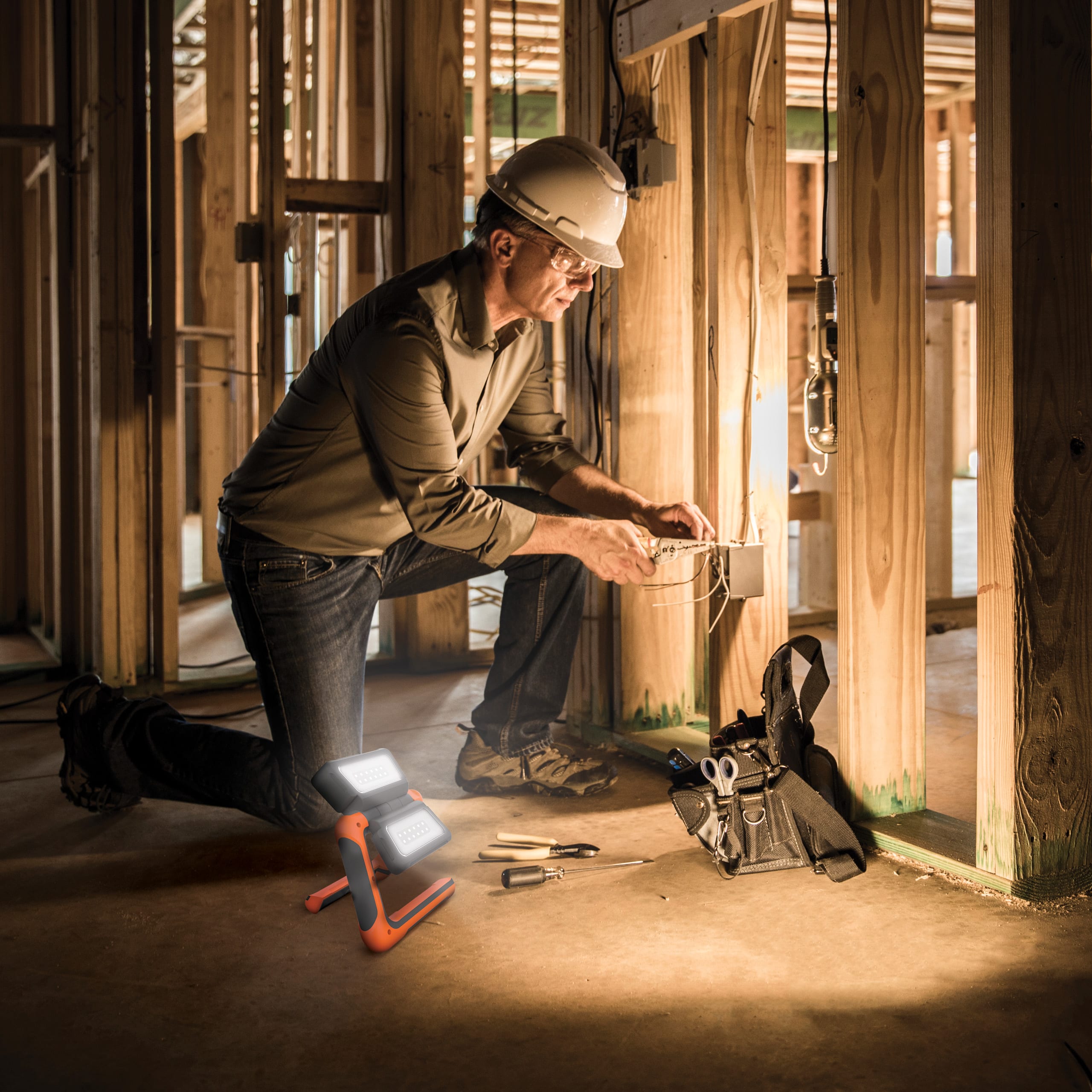 La gamme Energizer® HARDCASE PROFESSIONAL® est une gamme conçue pour les professionnels, avec des matériaux de qualité et des performances avancées pour accompagner l'exécution des tâches les plus exigeantes.Le nouveau projecteur Panel Work light s’adapte parfaitement aux conditions de travail particulières grâce à sa résistance aux chutes et à l’eau. Le Panel Work Light est un éclairage fonctionnant avec une batterie rechargeable et dispose également d’une fonction power bank: permet de charger un appareil se chargeant à partir d’un port USB. Sa double lentille offre à l’utilisateur un éclairage LED uniforme et puissant avec 1100 lumens. Ses lentilles sont orientables individuellement et permettent ainsi de diriger le faisceau lumineux dans la direction souhaitée. Le design compact du projecteur est en adéquation avec un usage de travail. Il possède également un indicateur de charge et de décharge. Enfin, son trépied ajustable permet de le poser ou de l’accrocher pour une utilisation mains-libres dès que nécessaire.
