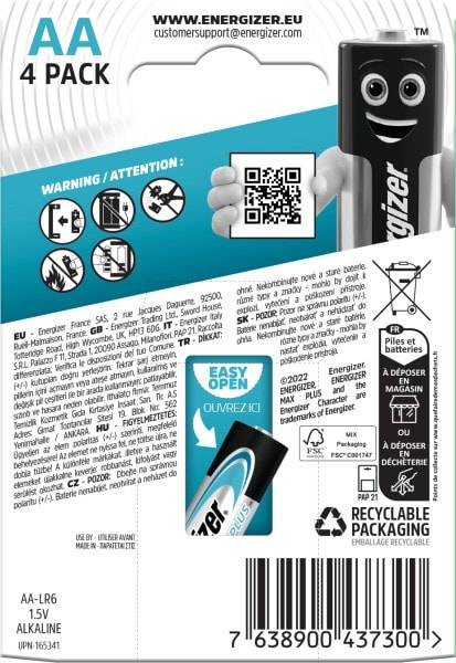 Energizer - Pile alcaline Max Plus AA/LR06 x 4 notre pile alc. qui dure le plus longtemps - 437300