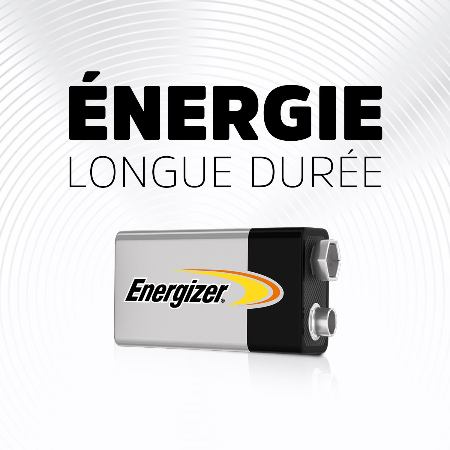 Alimentez vos appareils avec les piles 9V longue durée Energizer Alkaline Power : l’expertise dont vous avez besoin au meilleur prix. Les piles 9V Energizer Alkaline Power conservent leur énergie pendant 5 ans dans leur emballage, pour une énergie toujours disponible. Offrez l’énergie longue durée d’Energizer aux appareils que vous utilisez au quotidien, tels que les détecteurs de fumée, les jouets, les voitures télécommandées, les pendules et bien plus encore.
