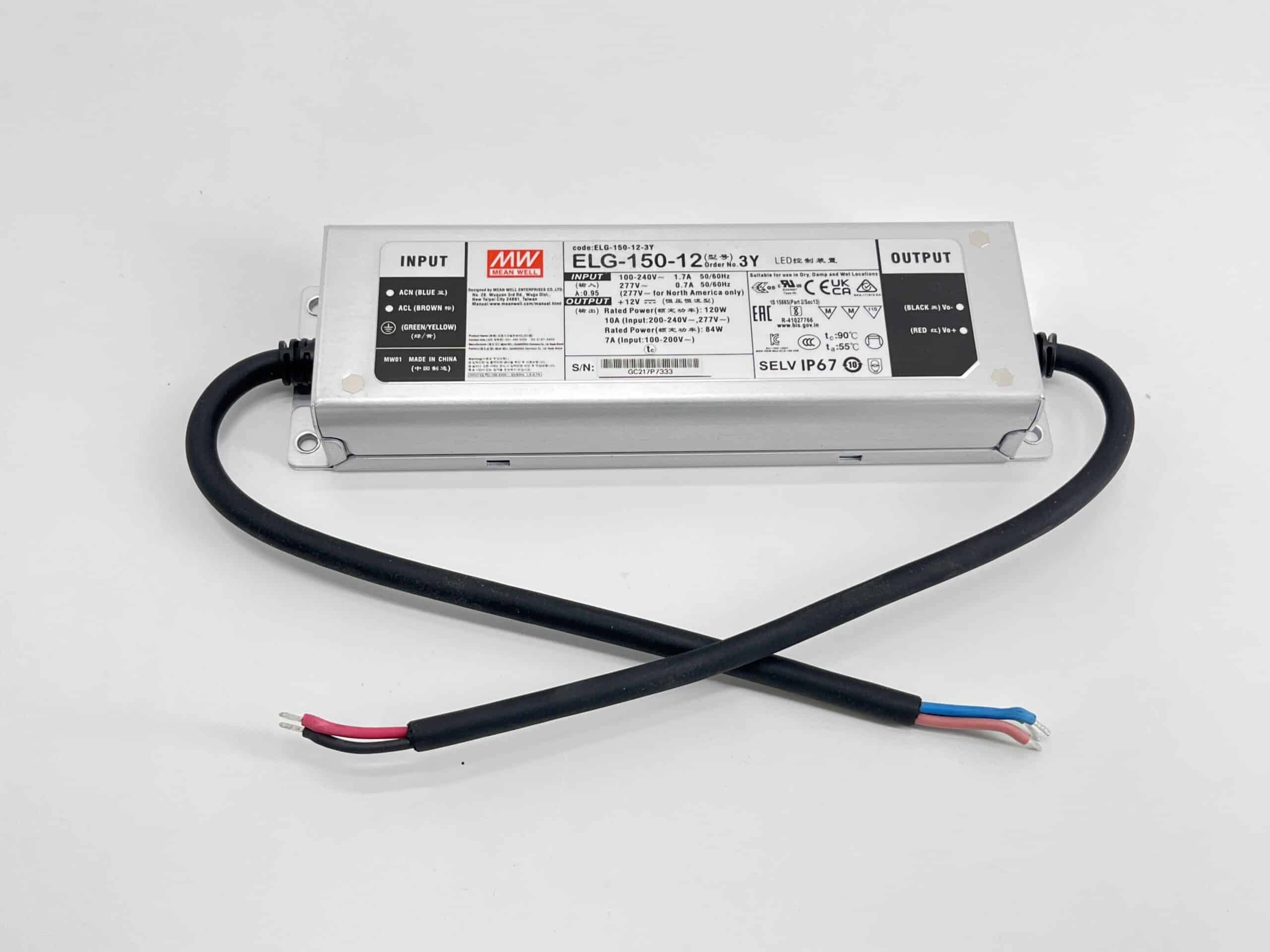 ELG-150-12DA-3Y ALIMENTATION VARIATION DALI IP67 D'UNE PUISSANCE DE 150W AVEC UNE TENSION DE SORTIE DE 12V