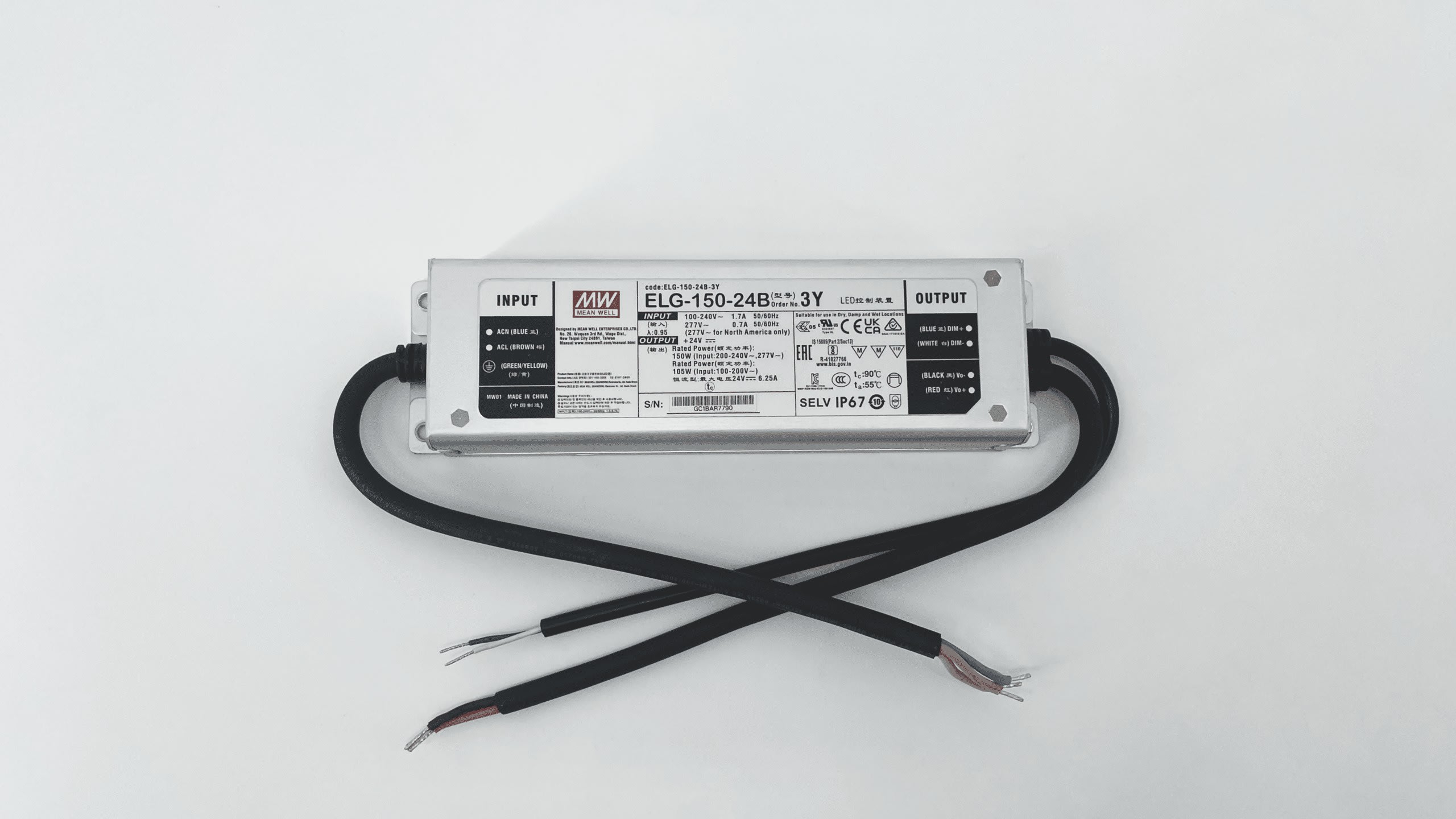 ELG-150-24B-3Y ALIMENTATION VARIATION 0/10V PWM IP67 D'UNE PUISSANCE DE 150W AVEC UNE TENSION DE SORTIE DE 24V