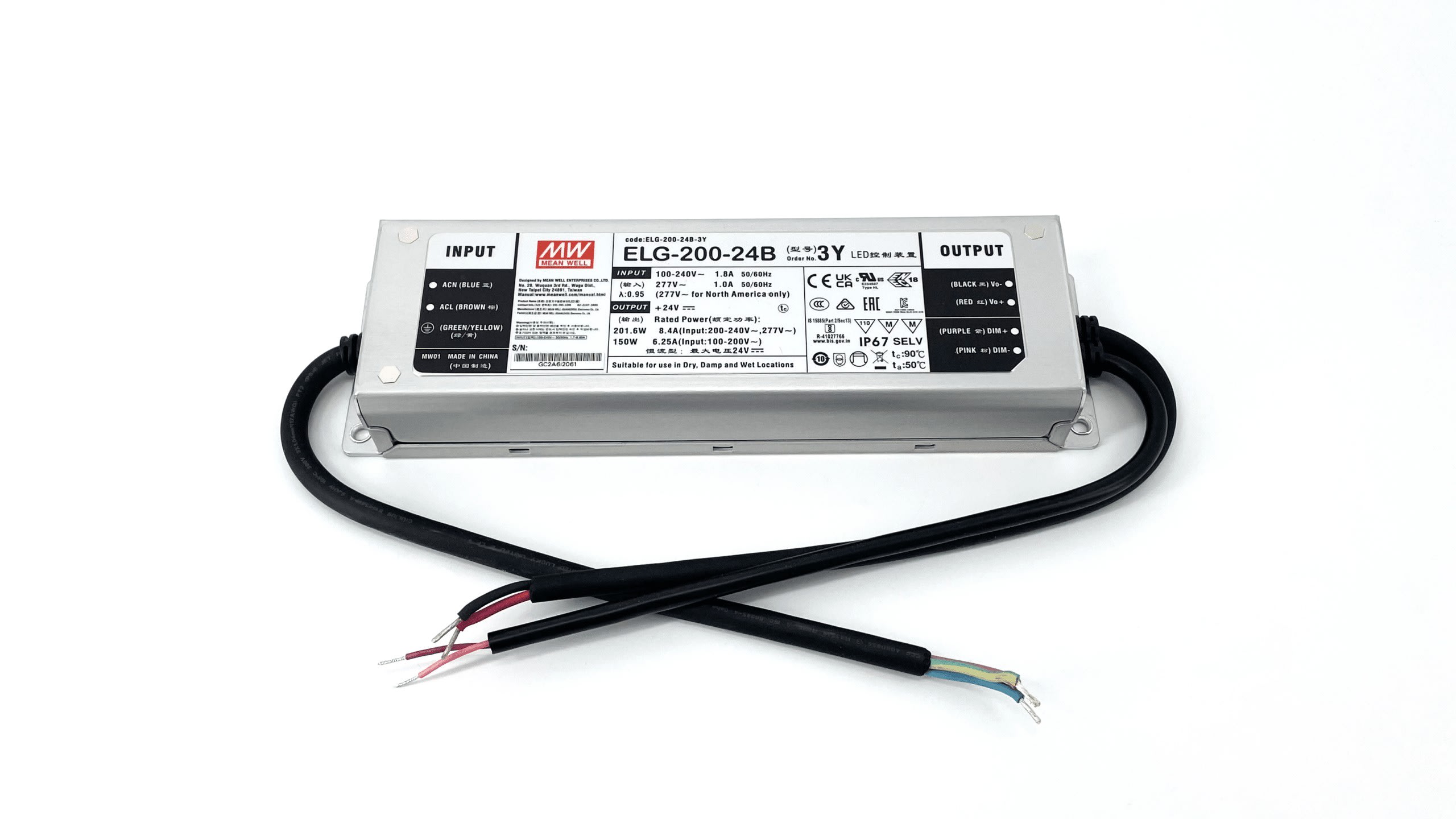 ELG-200-24B-3Y ALIMENTATION VARIATION 0-10V OU PWM IP67 D'UNE PUISSANCE DE 200W AVEC UNE TENSION DE SORTIE DE 24V