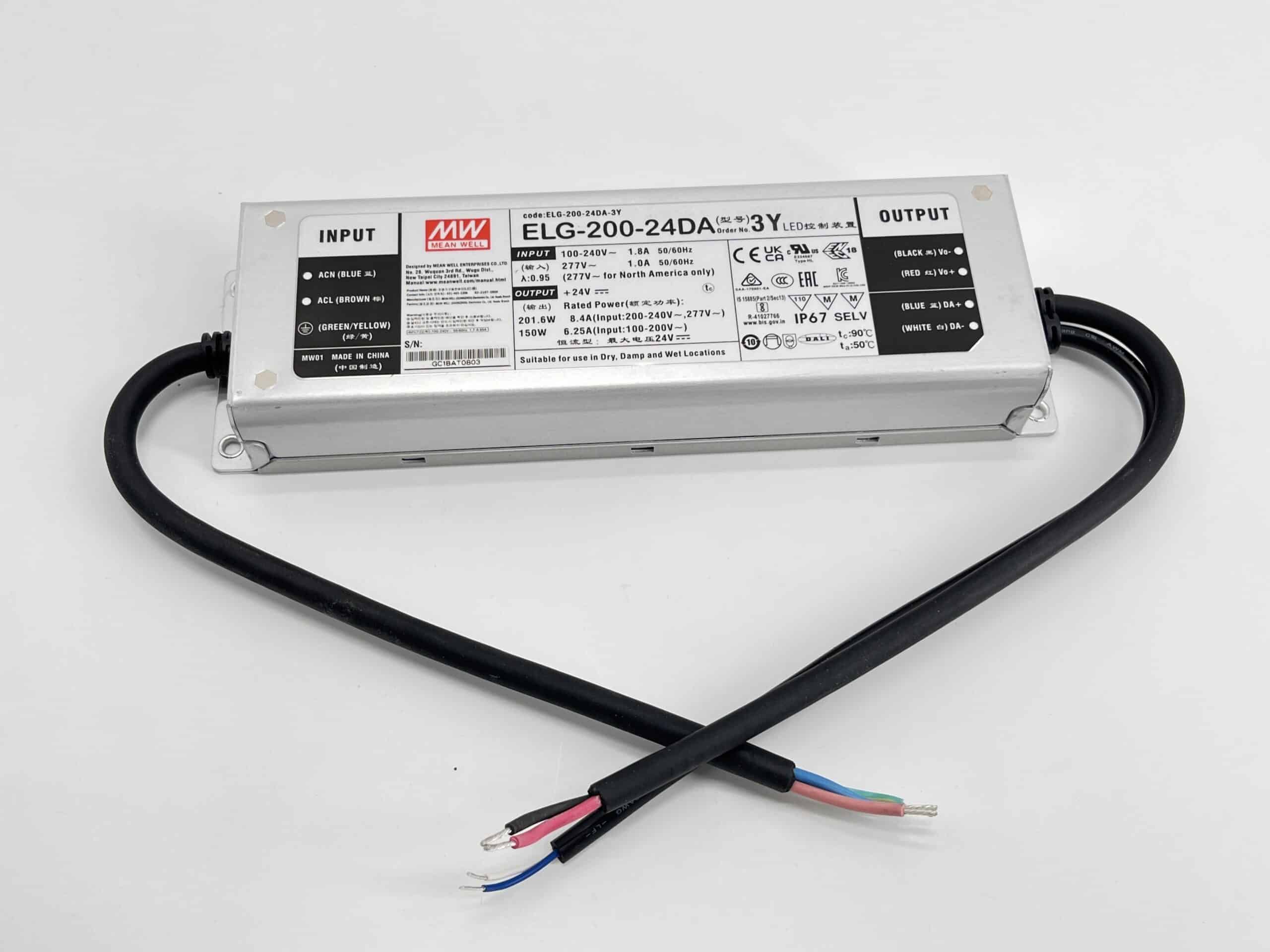 ELG-200-24DA-3Y ALIMENTATION VARIATION DALI IP67 D'UNE PUISSANCE DE 200W AVEC UNE TENSION DE SORTIE DE 24V
