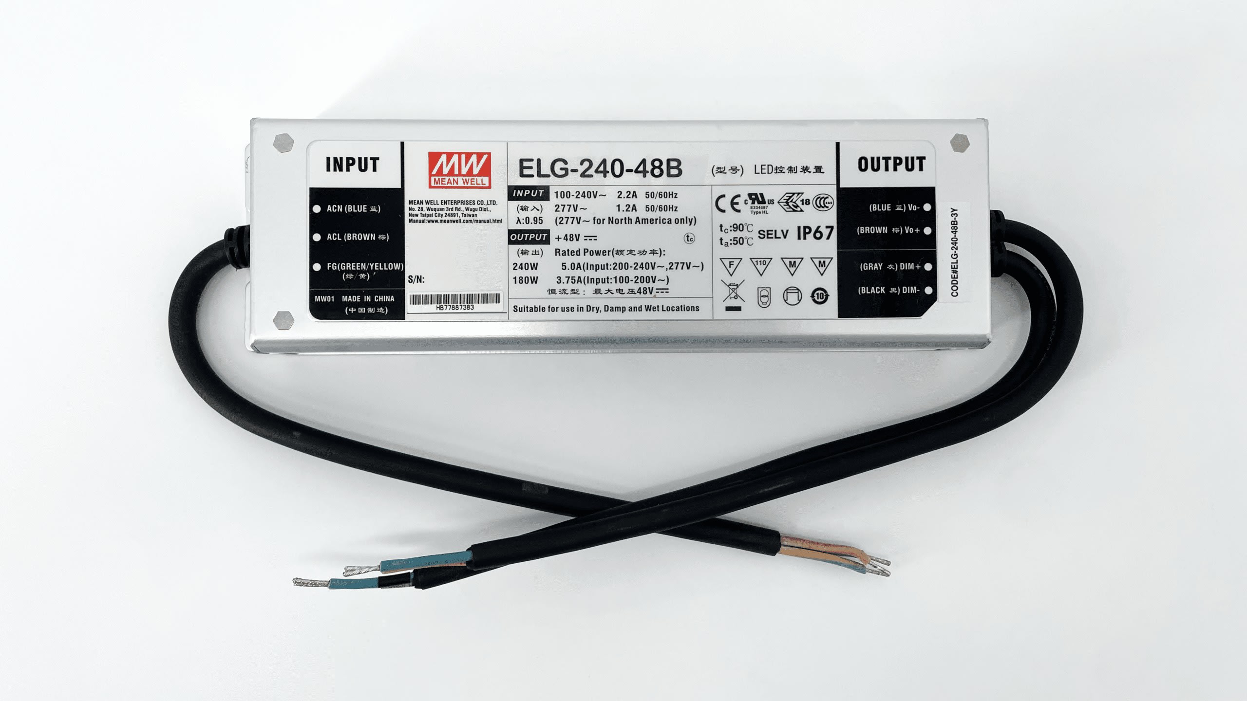 ELG-240-48B-3Y ALIMENTATION VARIATION 1/10V IP67 D'UNE PUISSANCE DE 240W AVEC UNE TENSION DE SORTIE DE 48V