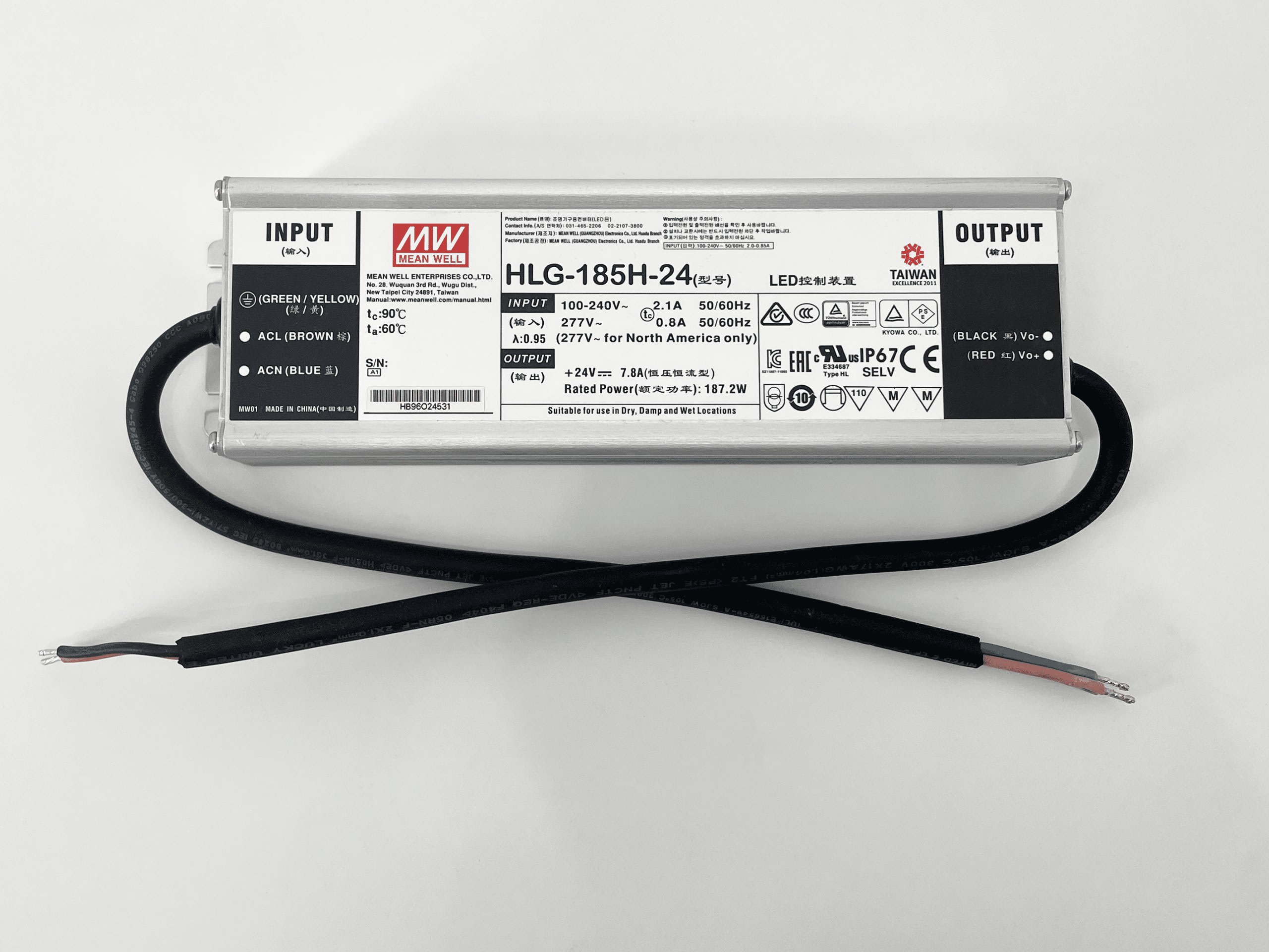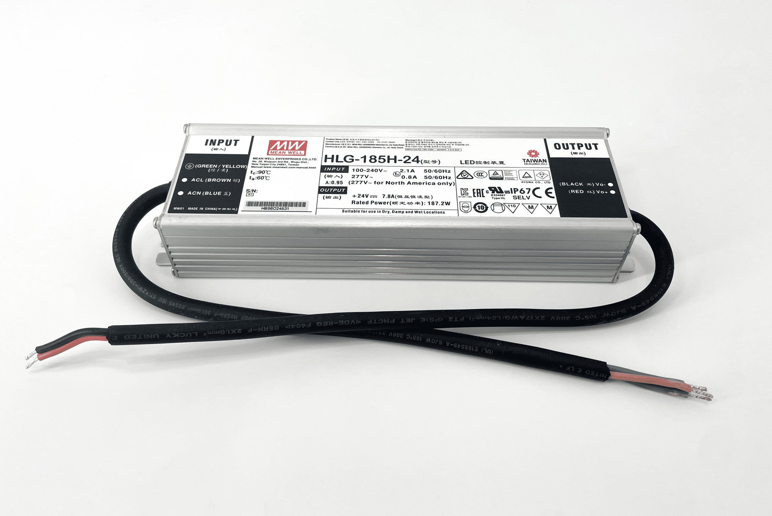 HLG-185H-24 ALIMENTATION NON DIMMABLE IP65 D'UNE PUISSANCE DE 185W ET AVEC UN TENSION DE SORTIE DE 24V