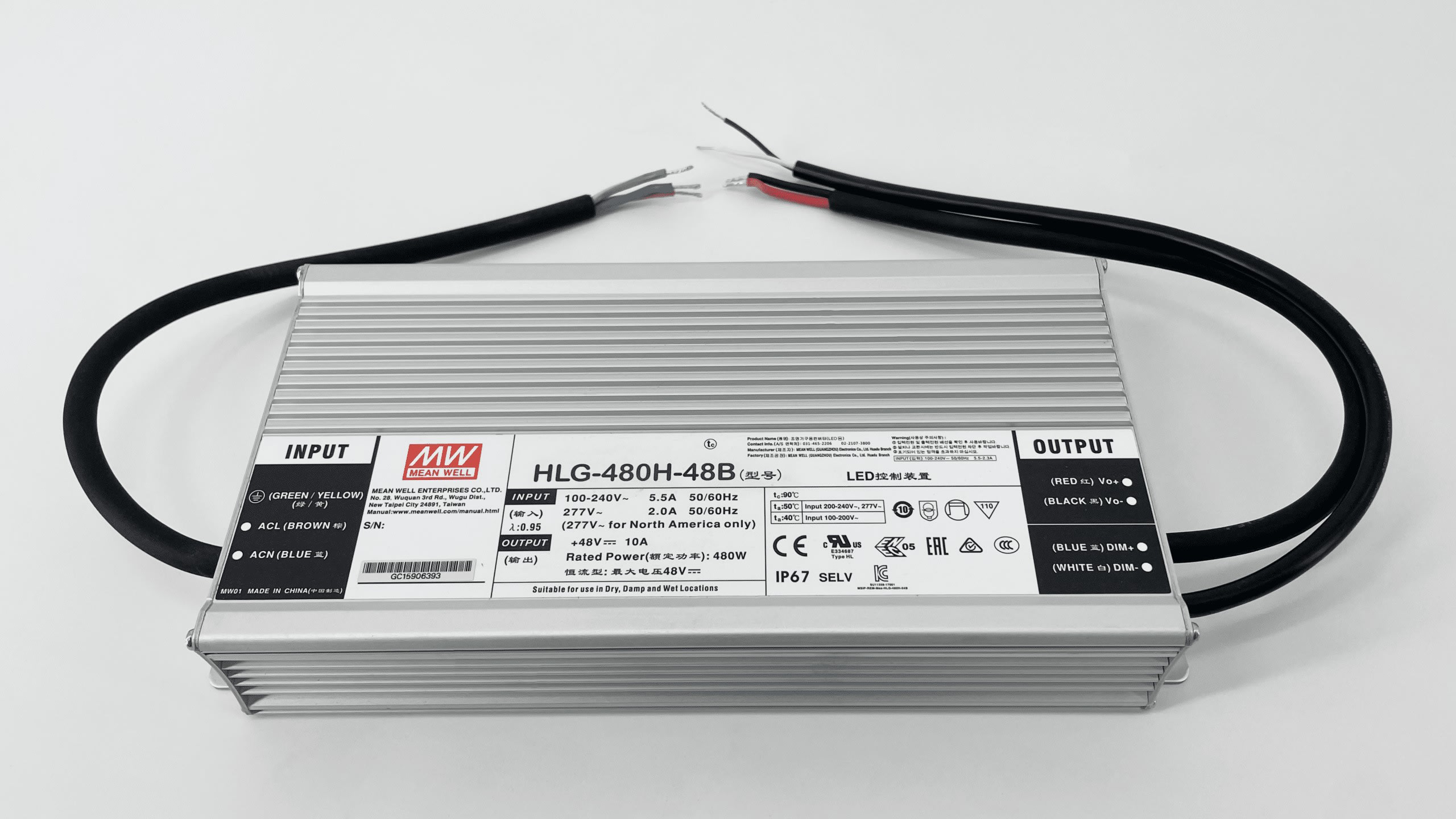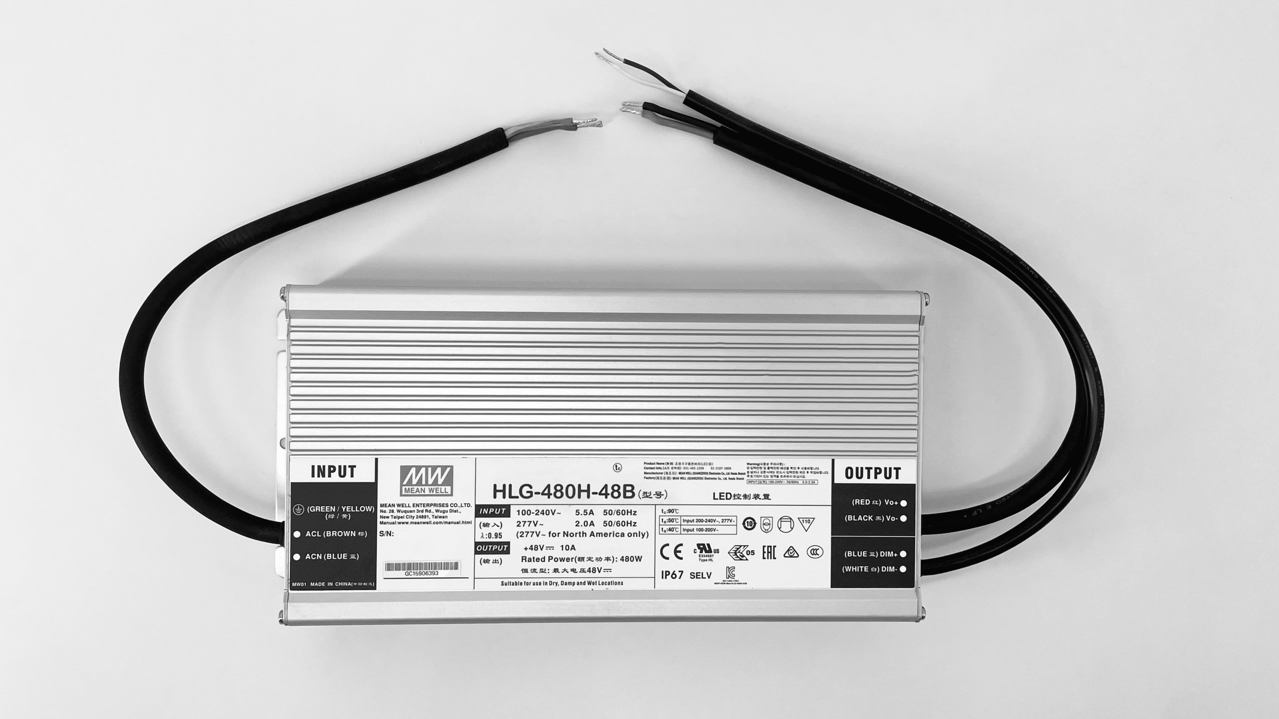HLG-480-48B ALIMENTATION VARIATION 1/10V IP67 D'UNE PUISSANCE DE 480W AVEC UNE TENSION DE SORTIE DE 48V