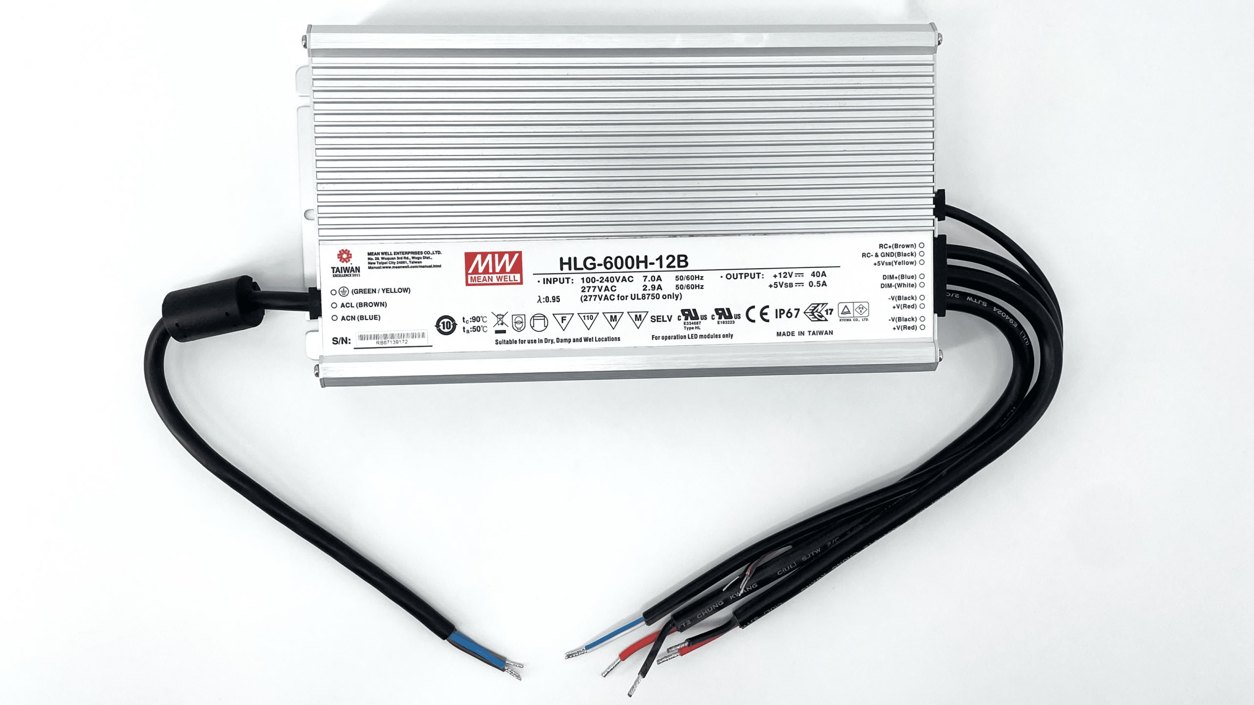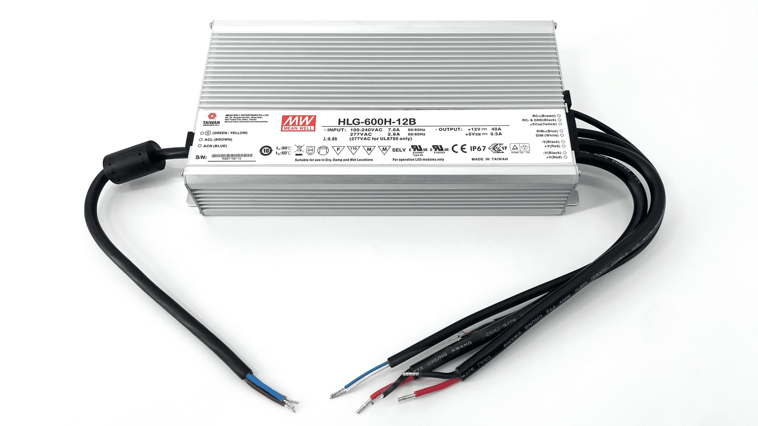 HLG-600H-12B ALIMENTATION VARIATION 0/10V PWM IP65 D'UNE PUISSANCE DE 600W AVEC UNE TENSION DE SORTIE DE 12V