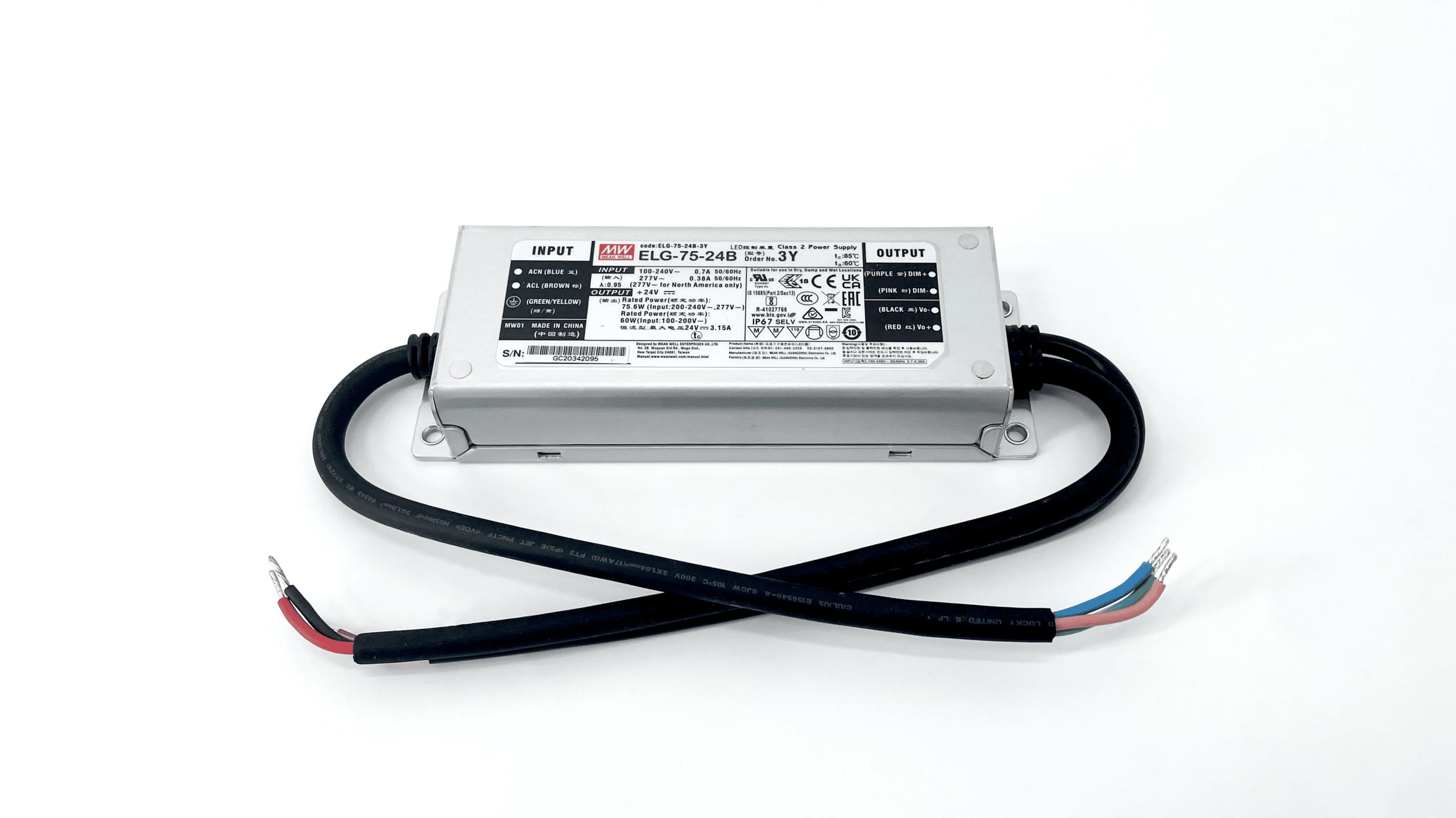 LAL-ELG-75-24B-3Y ALIMENTATION VARIATION 0/10V PWM IP67 D'UNE PUISSANCE DE 75W AVEC UNE TENSION DE SORTIE DE 24V