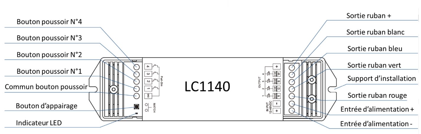 LC1140 RECEPTEUR UTILISANT LE PROTOCOLE HF POUR CONTROLE DE LUMINAIRE RGBW PUSH DIM