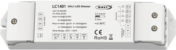 LC1401 CONTROLEUR UTILISANT LE PROTOCOLE DALI D'UNE TENSION DE SORTIE DE 12/48V 4 CANAUX IP20