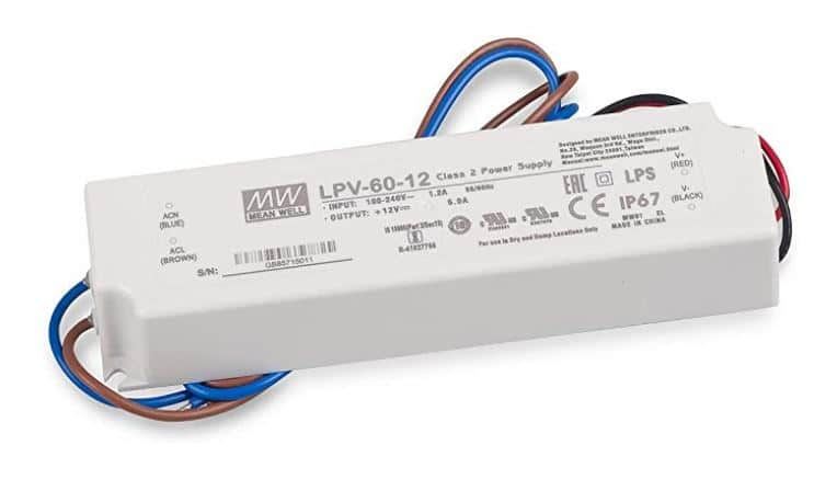 Alimentation de marque MEANWELL, robuste, fiable avec son étanchéité IP67.