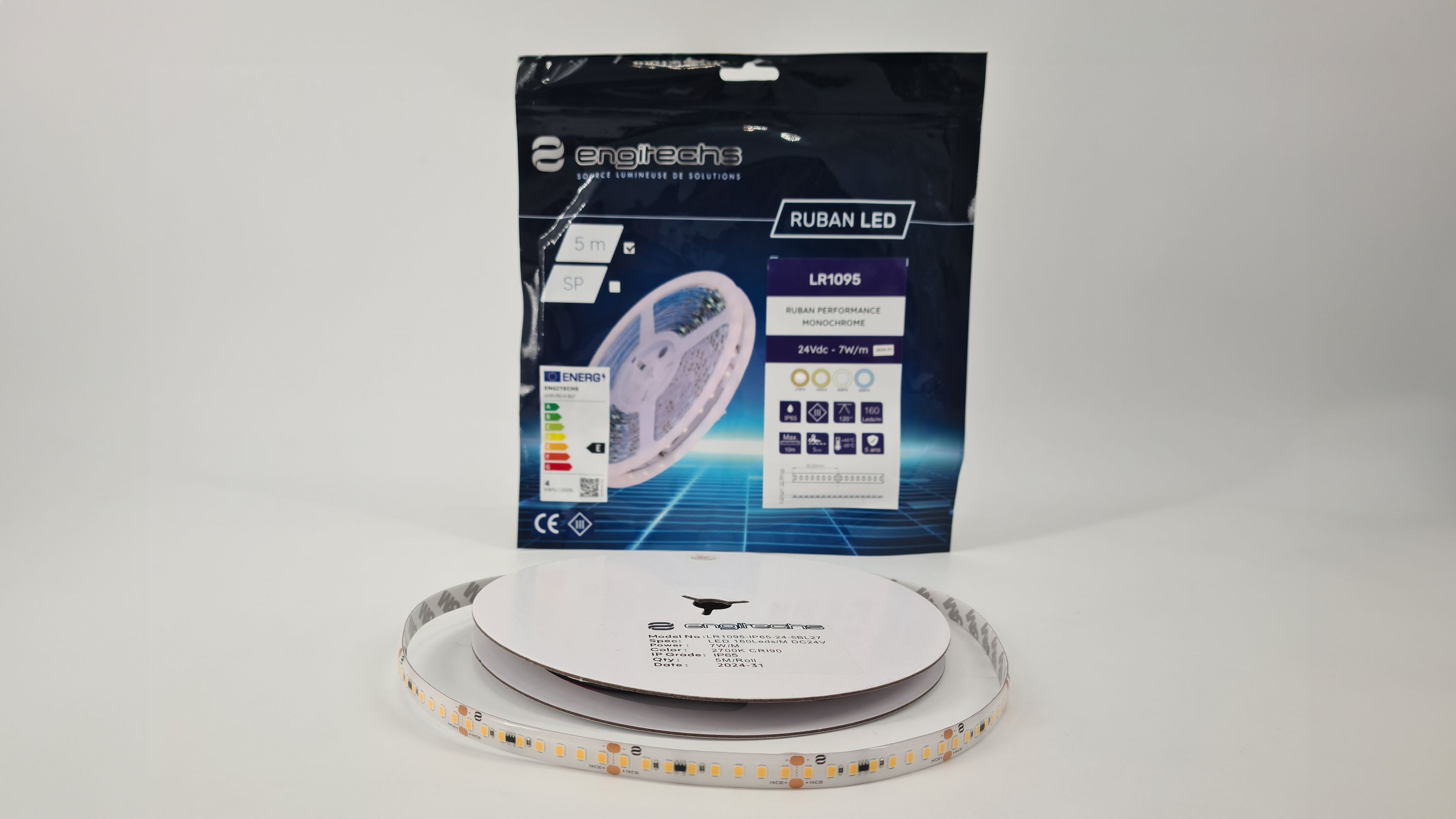 ENGITECHS - LR1095 RUBAN LED 7W, 24V, 1050LM, 145LM/W, 4000K, IP65, IRC90, 1CM - LR1095-IP65-24SPBL40