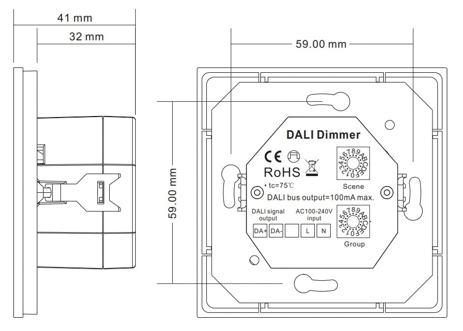 LR2392 COMMANDE MURALE UTILISANT LE PROTOCOLE DE COMMUNICATION DALI DT8 4 ZONES AVEC UNE ROUE CHROMATIQUE