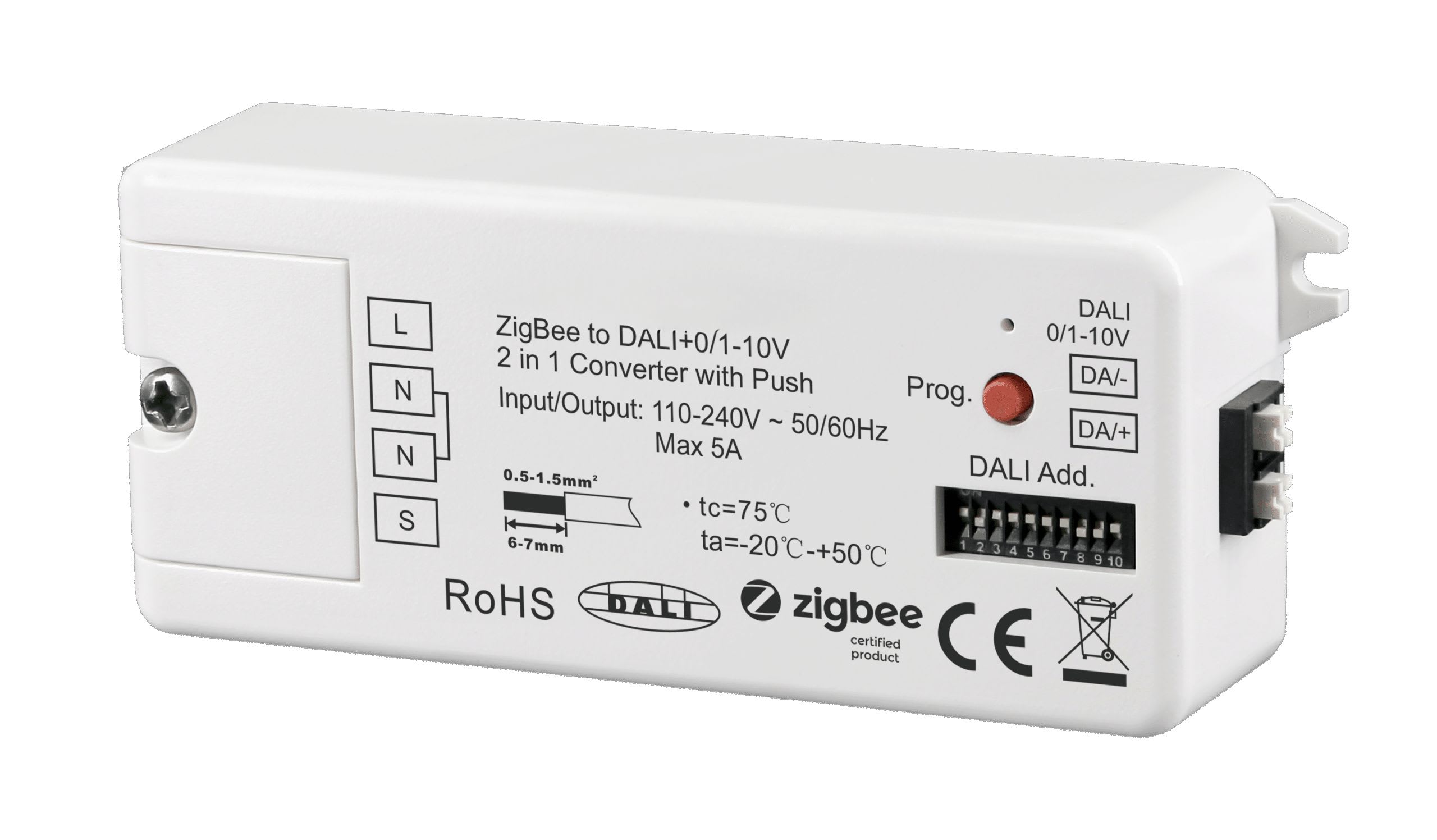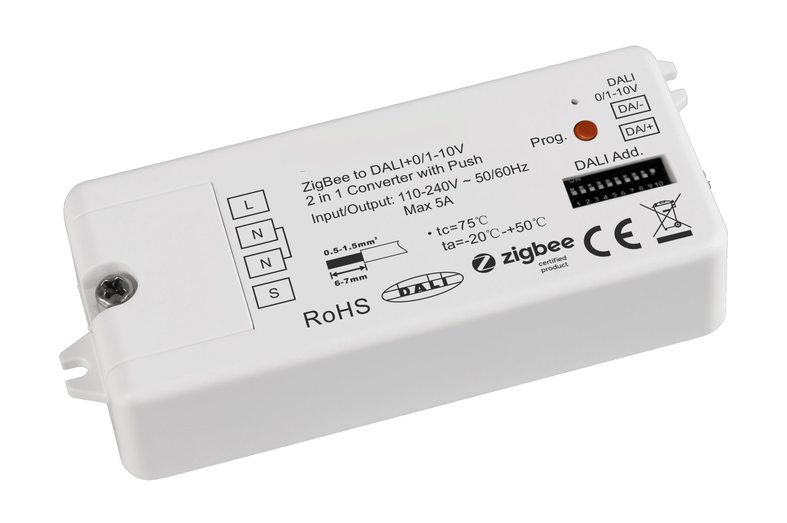 Ce module vous permettra de contrôler jusqu’à 25 luminaires DALI via une commande ZIGBEE ou en PUSH-DIM via le raccordement d’un bouton poussoir. Ce produit intègre l’alimentation du bus DALI.Bon à savoir : Ce produit utilise le protocole sans fil ZIGBEE et filaire DALI et reste compatible avec d’autres modules utilisant ces mêmes langages de communication.