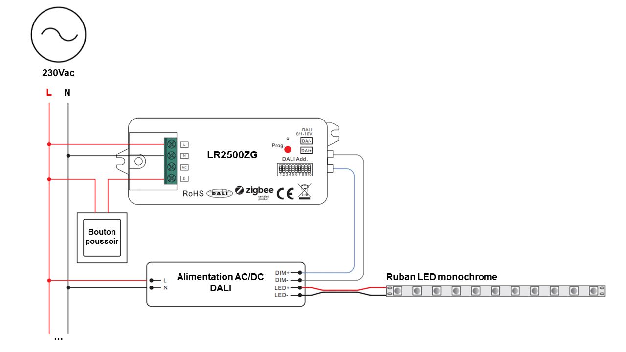LR2500ZG CONTROLEUR UTILISANT LE PROTOCOLE DE COMMUNICATION ZIGBEE EN VARIATION DALI/PUSH