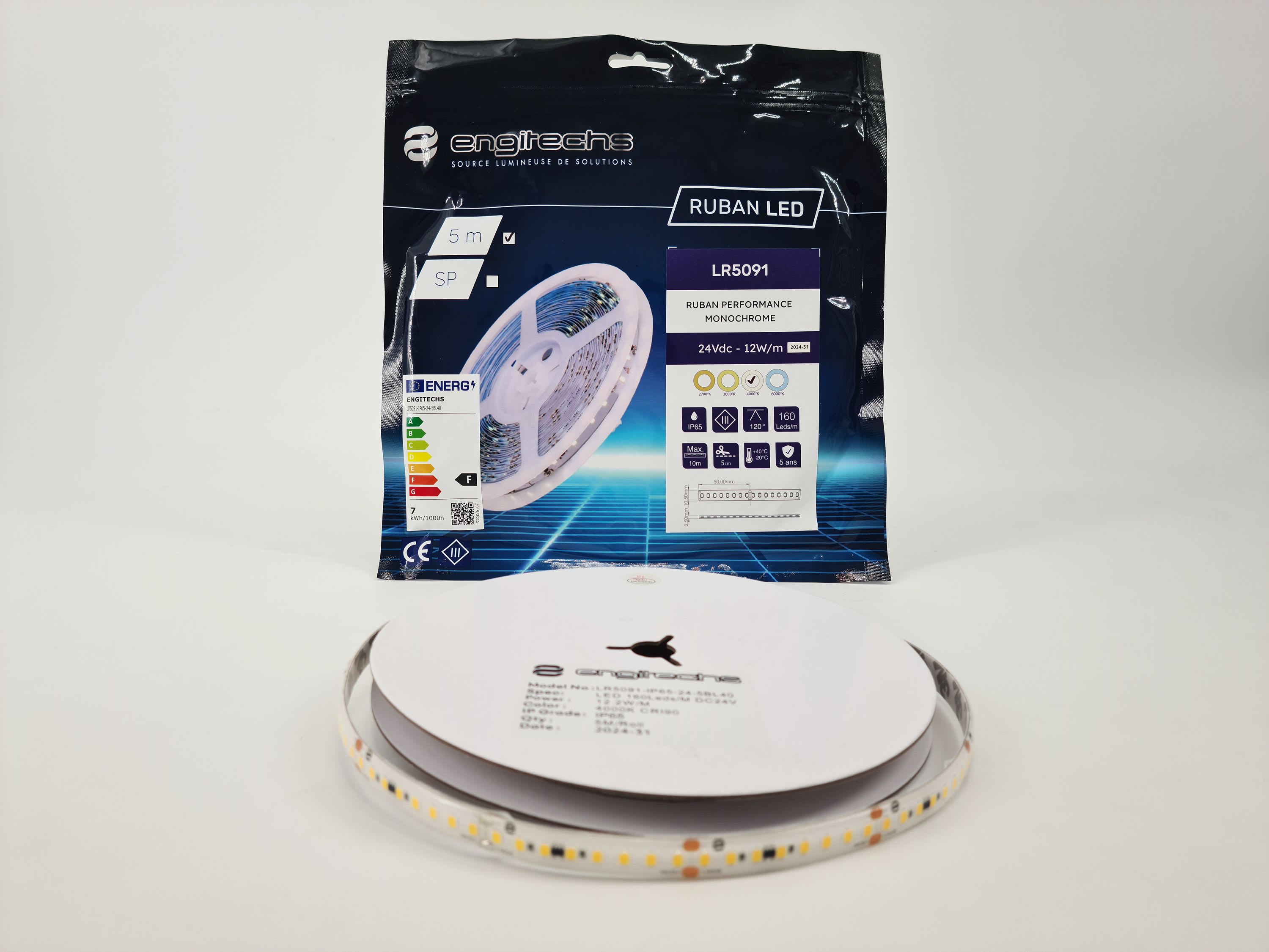 ENGITECHS - LR5091 RUBAN LED 12W, 24V, 1600LM, 130LM/W, 3000K, IP65, IRC90, 10M - LR5091-IP65-24-10BL30