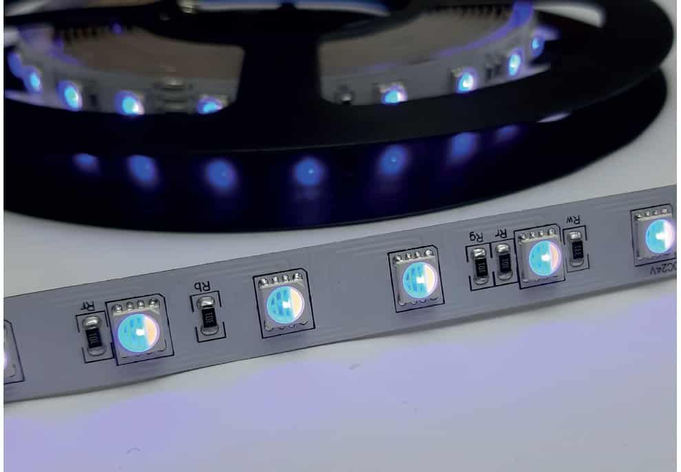 LR7100 RUBAN LED 19,2W 24V RGB 4000K IP20 1120LM IRC80 60LEDS/M 7M MAX SECABLE TOUS LES 10CM BOBINE DE 5M