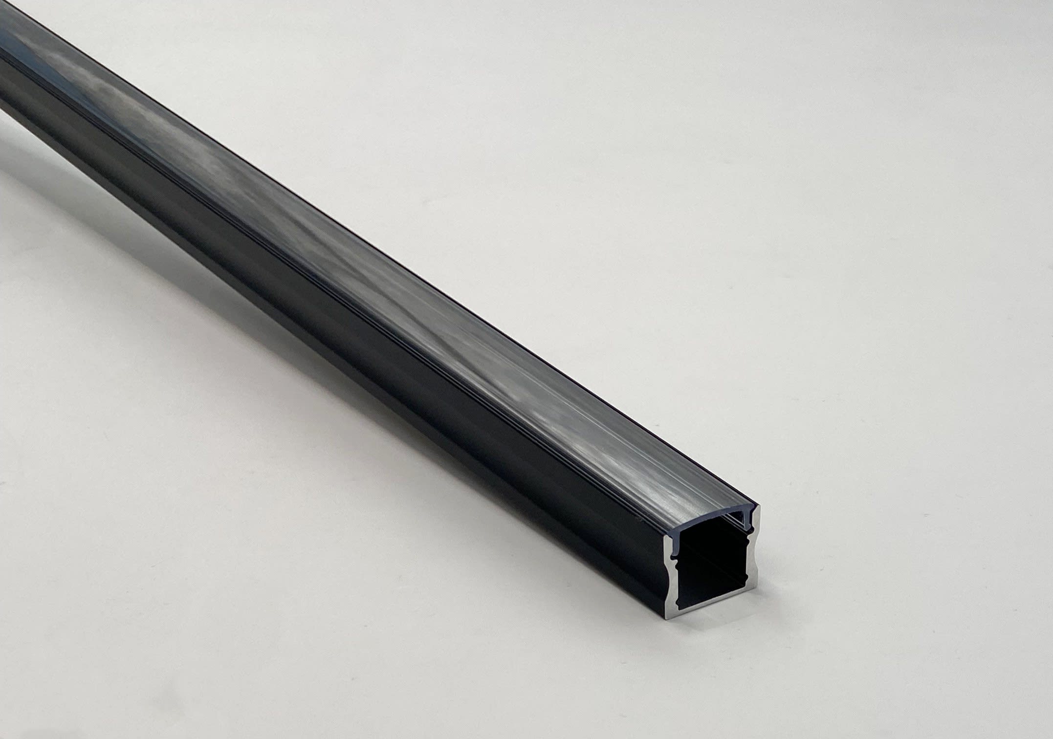 PR1001 PROFILE EN MATIERE ALUMINIUM SAILLIE DE COLORIS NOIR D'UNE LONGUEUR DE 3M AVEC SON DIFFUSEUR TRANSPARENT