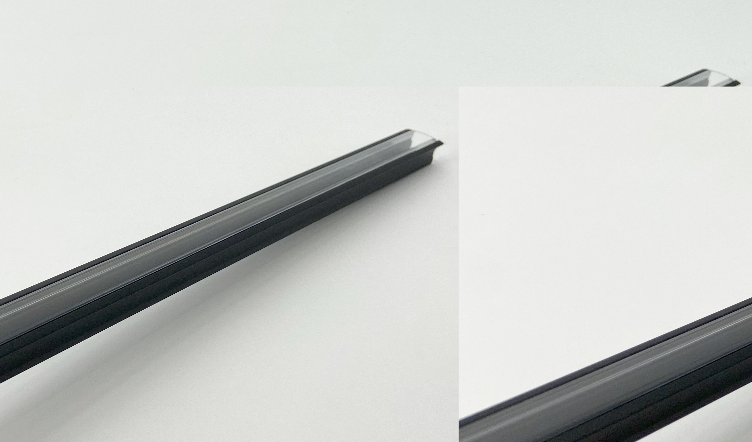 PR1002 PROFILE EN MATIERE ALUMINIUM A ENCASTRER DE COLORIS NOIR D'UNE LONGUEUR DE 1CM AVEC SON DIFFUSEUR TRANSPARENT