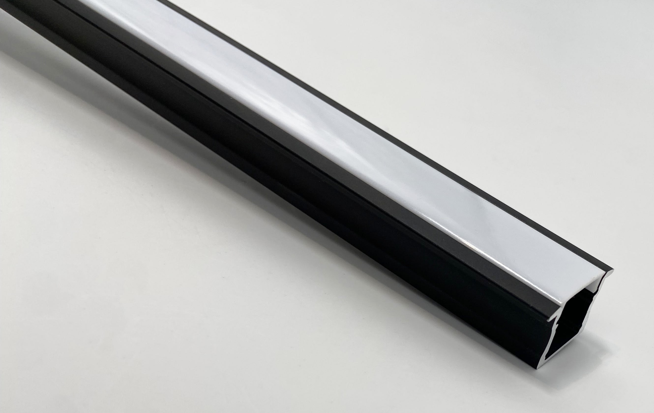PR1002 PROFILE EN MATIERE ALUMINIUM A ENCASTRER DE COLORIS NOIR D'UNE LONGUEUR DE 3M AVEC SON DIFFUSEUR OPAQUE
