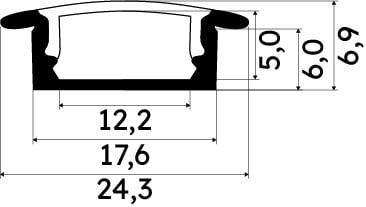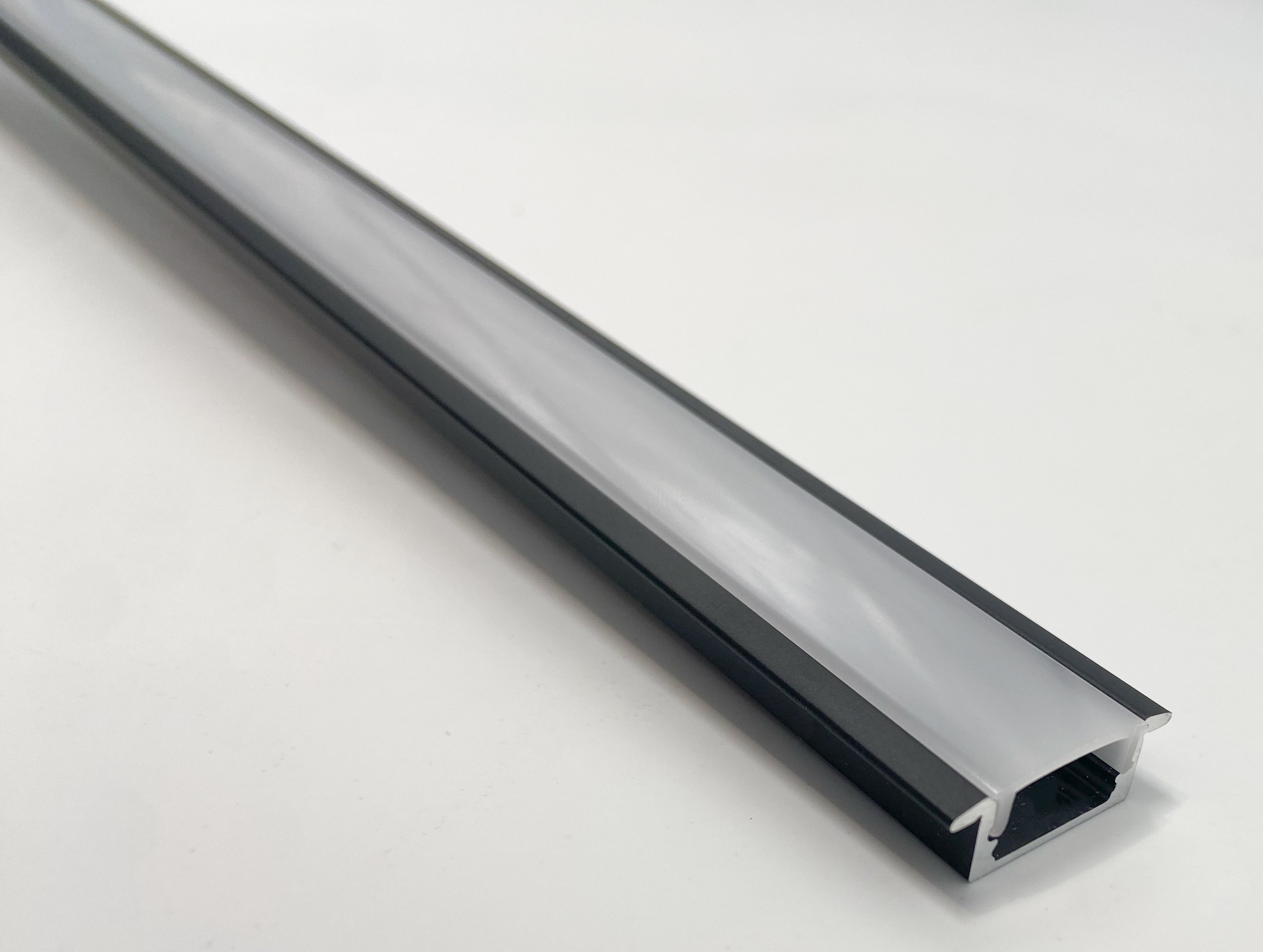 PR1006 PROFIL ALUMINIUM A ENCASTRER NOIR LONGUEUR DE SUR-MESURE 1CM AVEC SON DIFFUSEUR DIFFUSANT