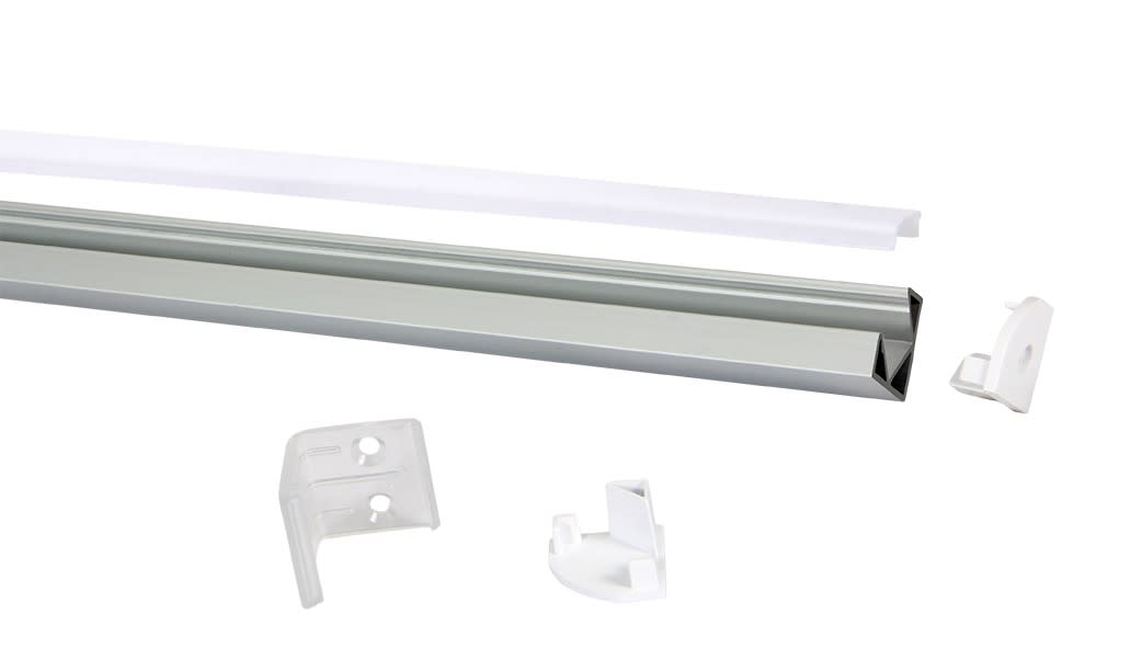 PR1012 PROFILE EN MATIERE ALUMINIUM D'ANGLE DE COLORIS GRIS D'UNE LONGUEUR DE 1CM AVEC SON DIFFUSEUR OPAL