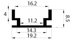 PR1014 PROFILE EN MATIERE ALUMINIUM A INTEGRER DE COLORIS GRIS D'UNE LONGUEUR DE 1CM AVEC DIFFUSANT POLYCARBONATE