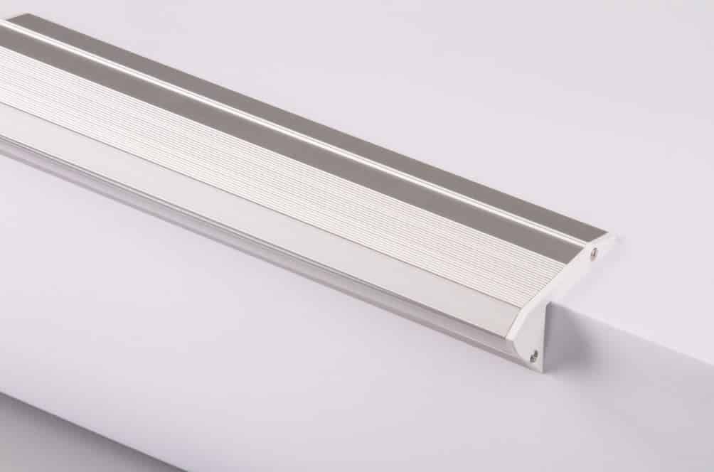 PR1015 PROFILE EN MATIERE ALUMINIUM NEZ DE MARCHE DE COLORIS GRIS D'UNE LONGUEUR DE 2M AVEC DIFFUSANT POLYCARBONATE