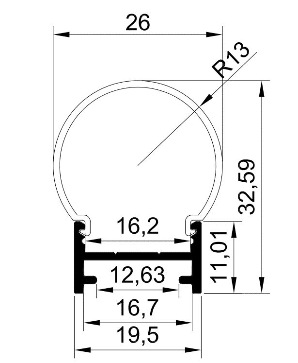 PR1019 PROFILE EN MATIERE ALUMINIUM SAILLIE DE COLORIS GRIS D'UNE LONGUEUR DE 1CM AVEC DIFFUSANT POLYCARBONATE