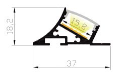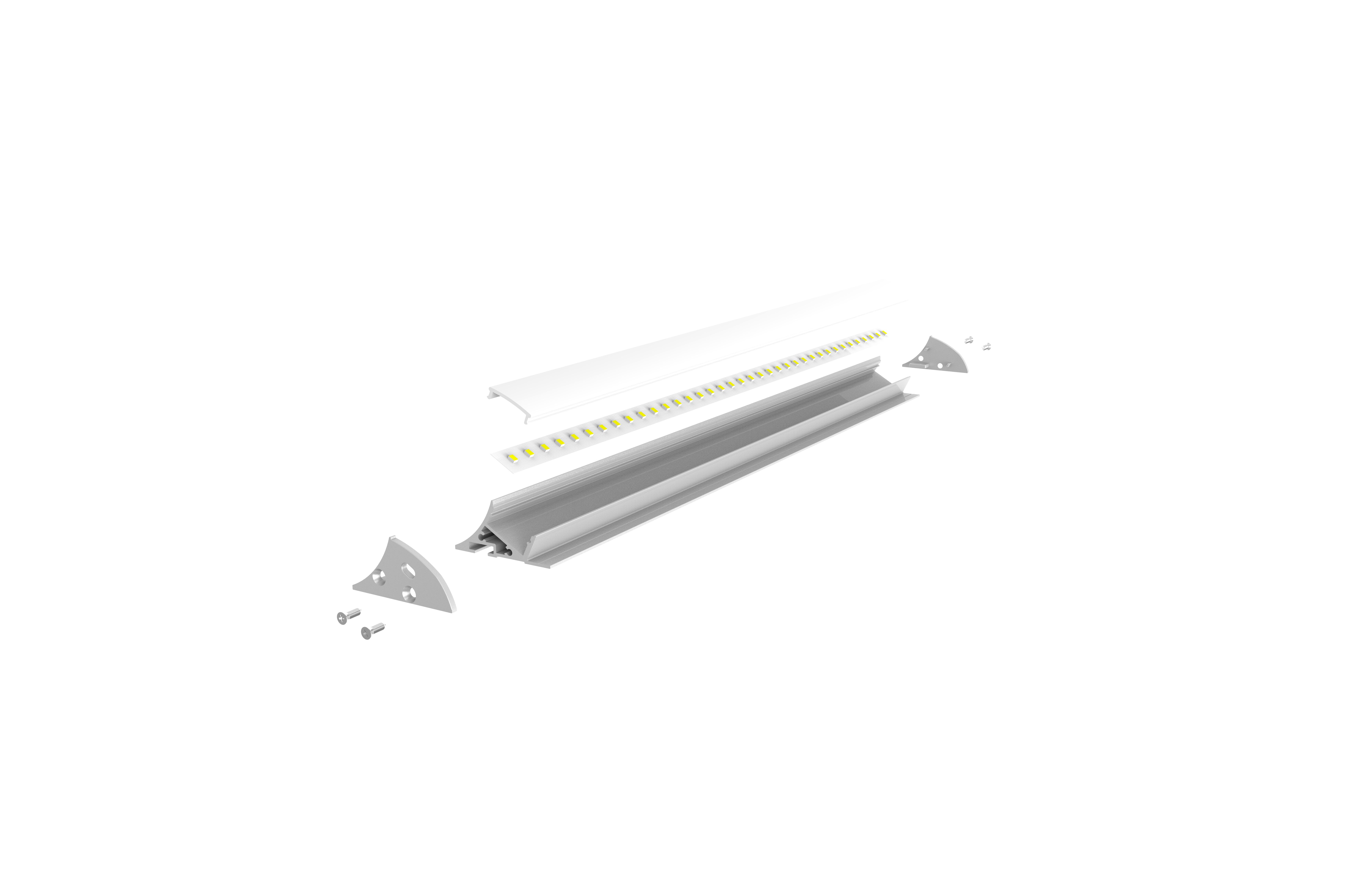 PR1023 PROFILE EN MATIERE ALUMINIUM ANGLE DE COLORIS GRIS D'UNE LONGUEUR DE 1CM AVEC DIFFUSANT POLYCARBONATE
