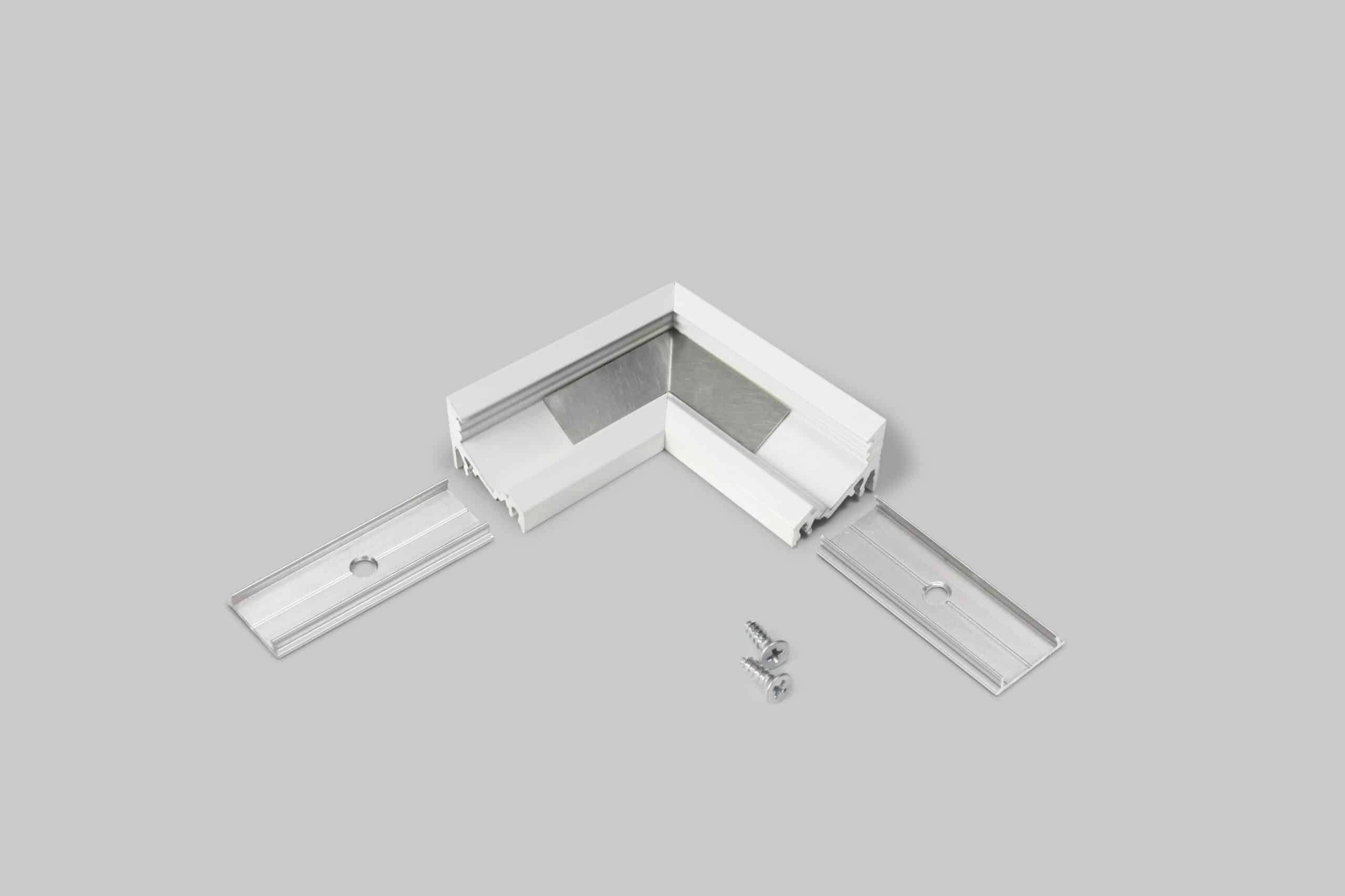 PR2001 CONNECTEUR D'ANGLE 90 DEGRES DE COLORIS BLANC EN MATIERE ALUMINIUM VENDU A L'UNITE