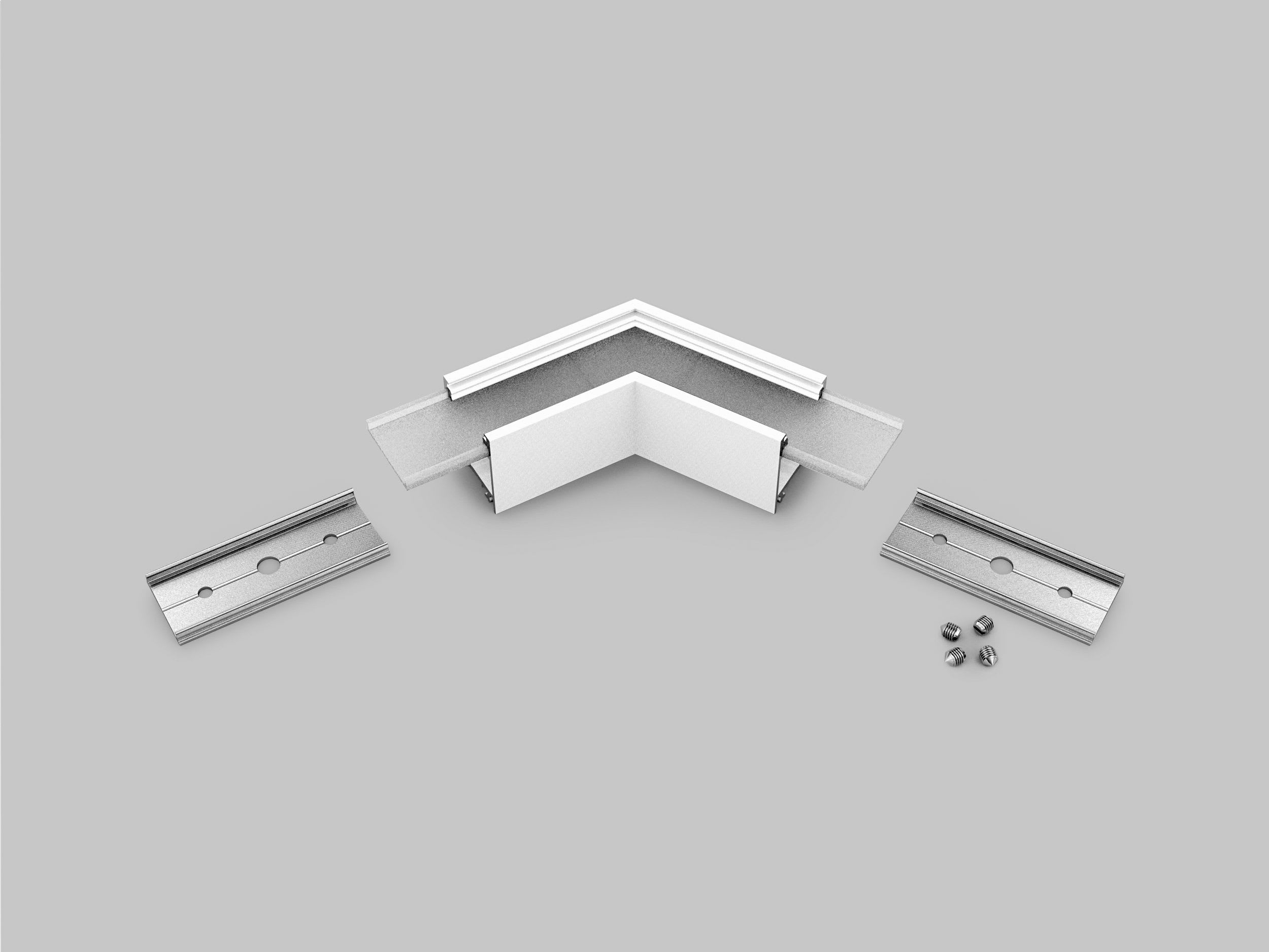 PR2003 CONNECTEUR D'ANGLE 120 DEGRES POUR JOINDRE DEUX PROFILES EN MATIERE ALUMINIUM DE COLORIS BLANC