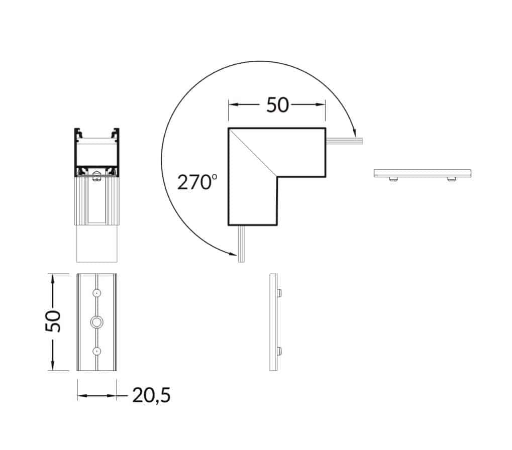 PR2003 ANGLE 90 ECLAIRAGE VERS L'EXTERIEUR DE COLORIS GRIS POUR CONNEXION ENTRE 2 PROFILES
