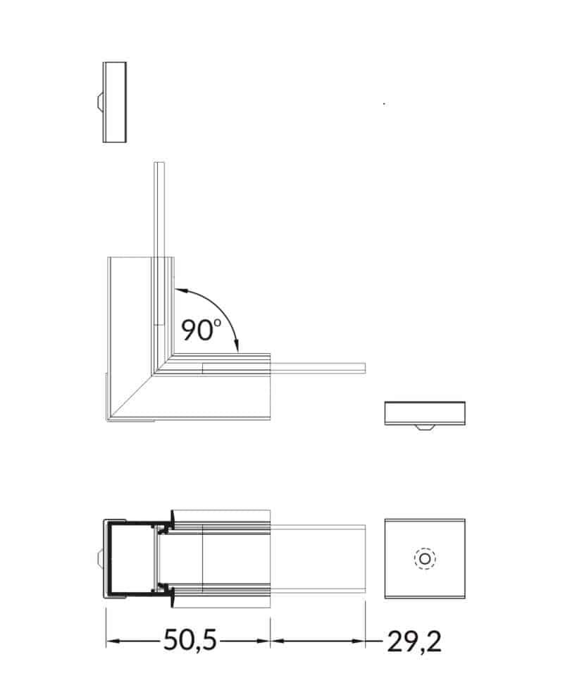 PR2004 PROFILE D'ANGLE 90° ENCLAIRAGE VERS L'INTERIEUR NOIR POUR JOINDRE 2 PROFILES