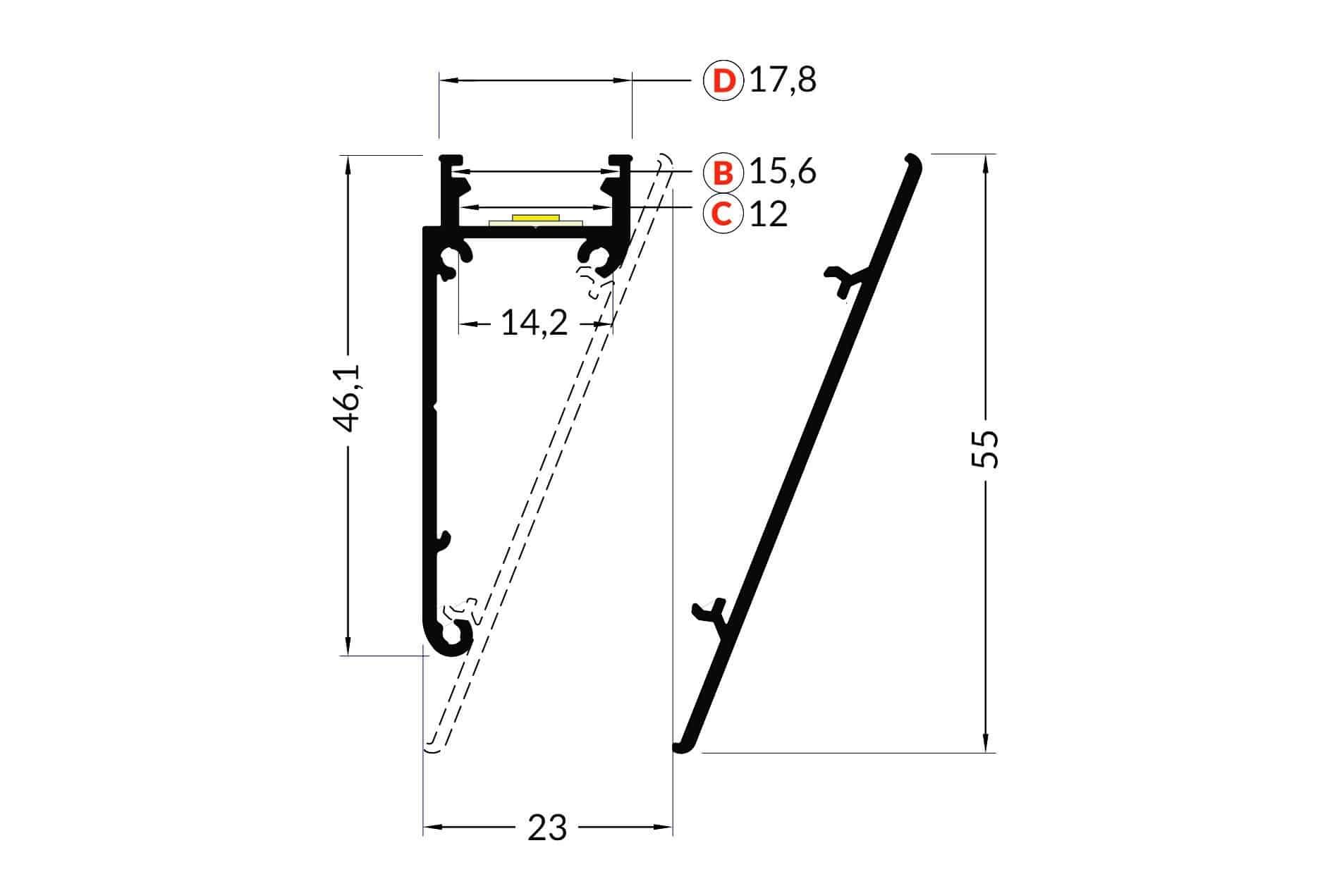 PR2006C PROFILE EN MATIERE ALUMINIUM CORNICHE DE COLORIS BLANC D'UNE LONGUEUR DE 2M AVEC DIFFUSANT POLYCARBONATE CLIPANT