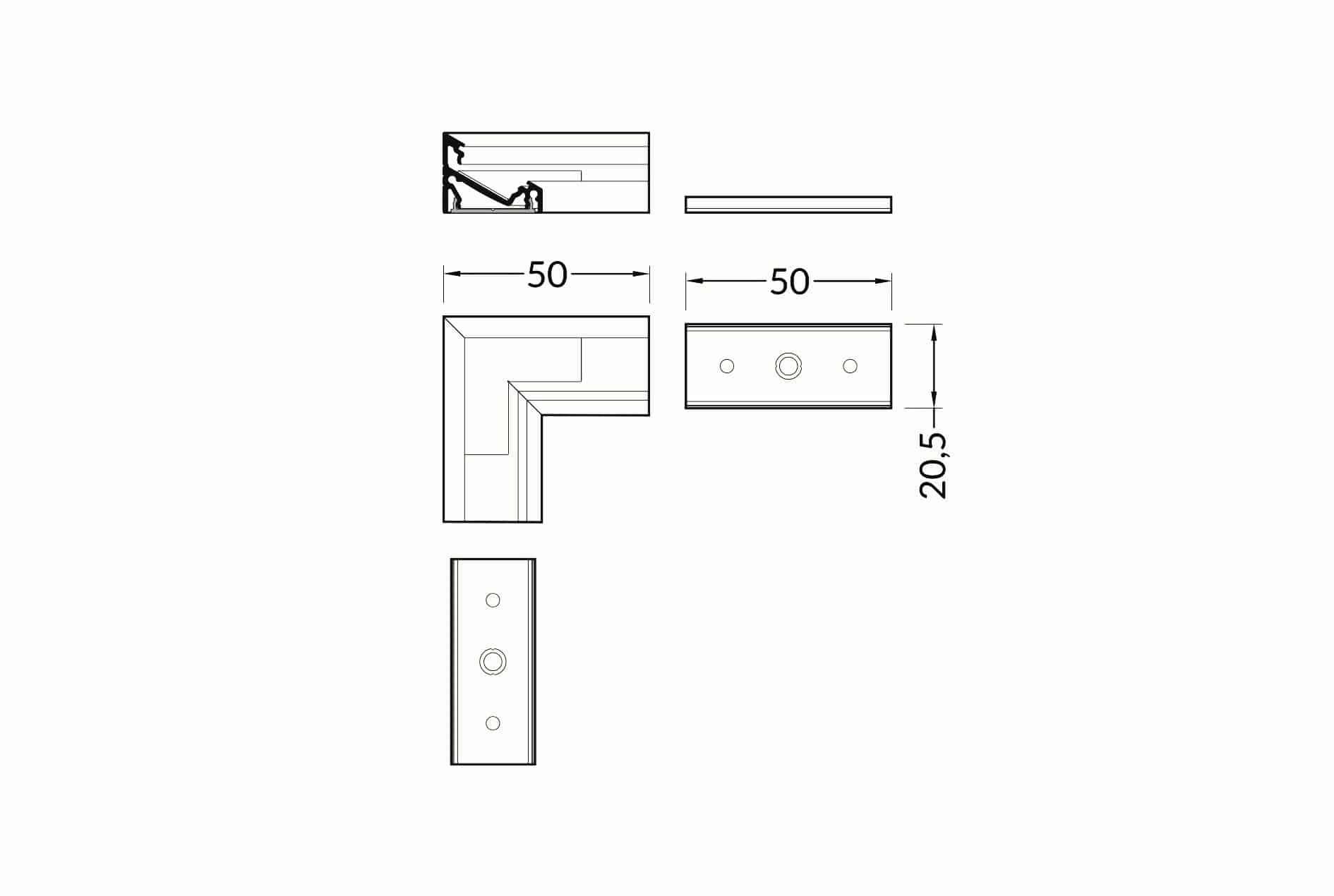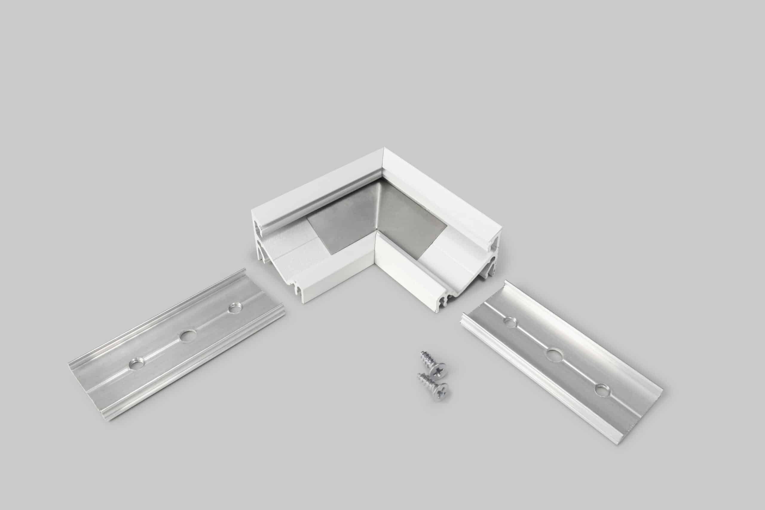 PR2009 CONNECTEUR D'ANGLE 90 DEGRES POUR JOINDRE DEUX PROFILES EN MATIERE ALUMINIUM DE COLORIS BLANC