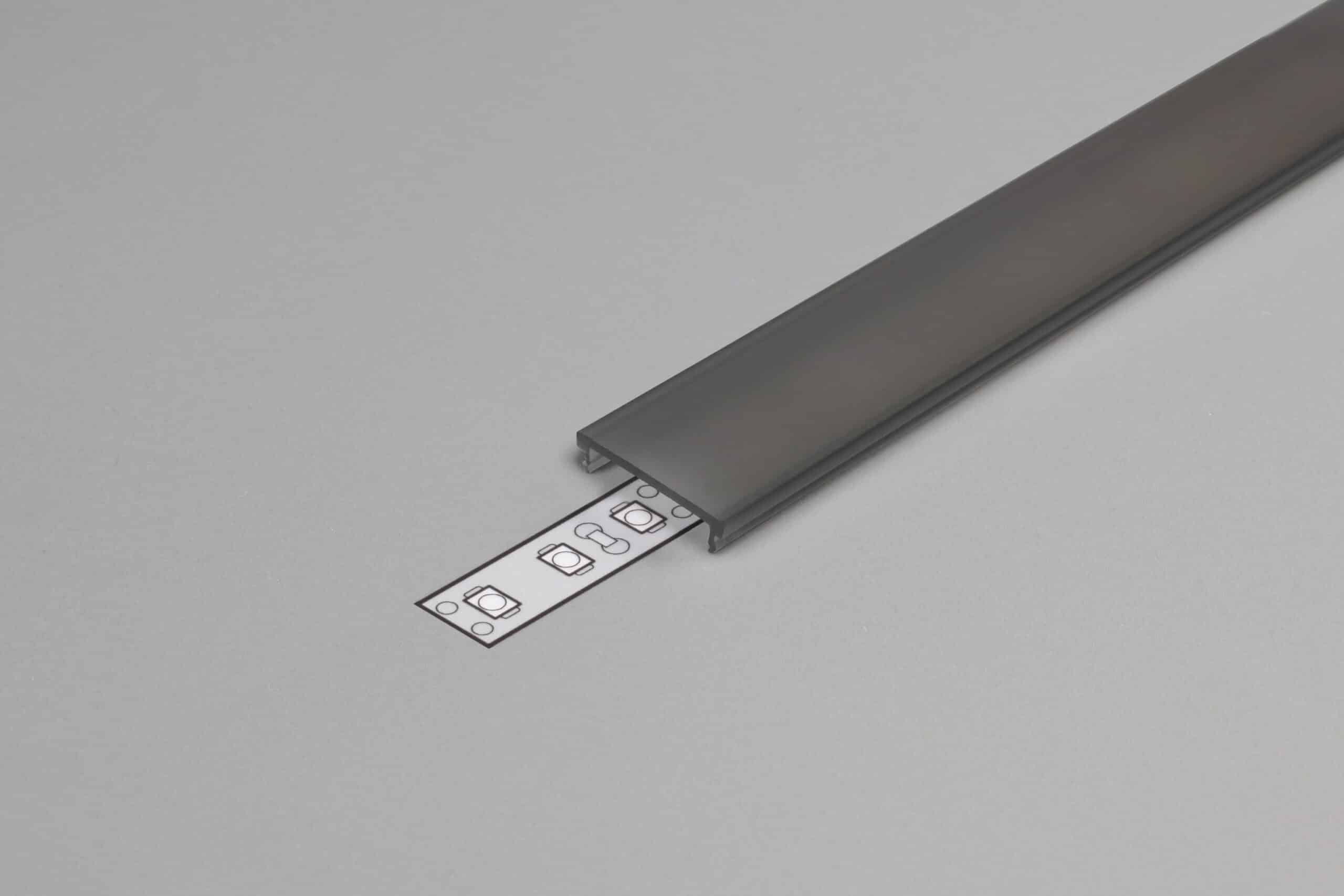 PR2013F PROFILE EN MATIERE ALUMINIUM SAILLIE DE COLORIS NOIR D'UNE LONGUEUR DE 2M AVEC DIFFUSANT POLYCARBONATE CLIPANT