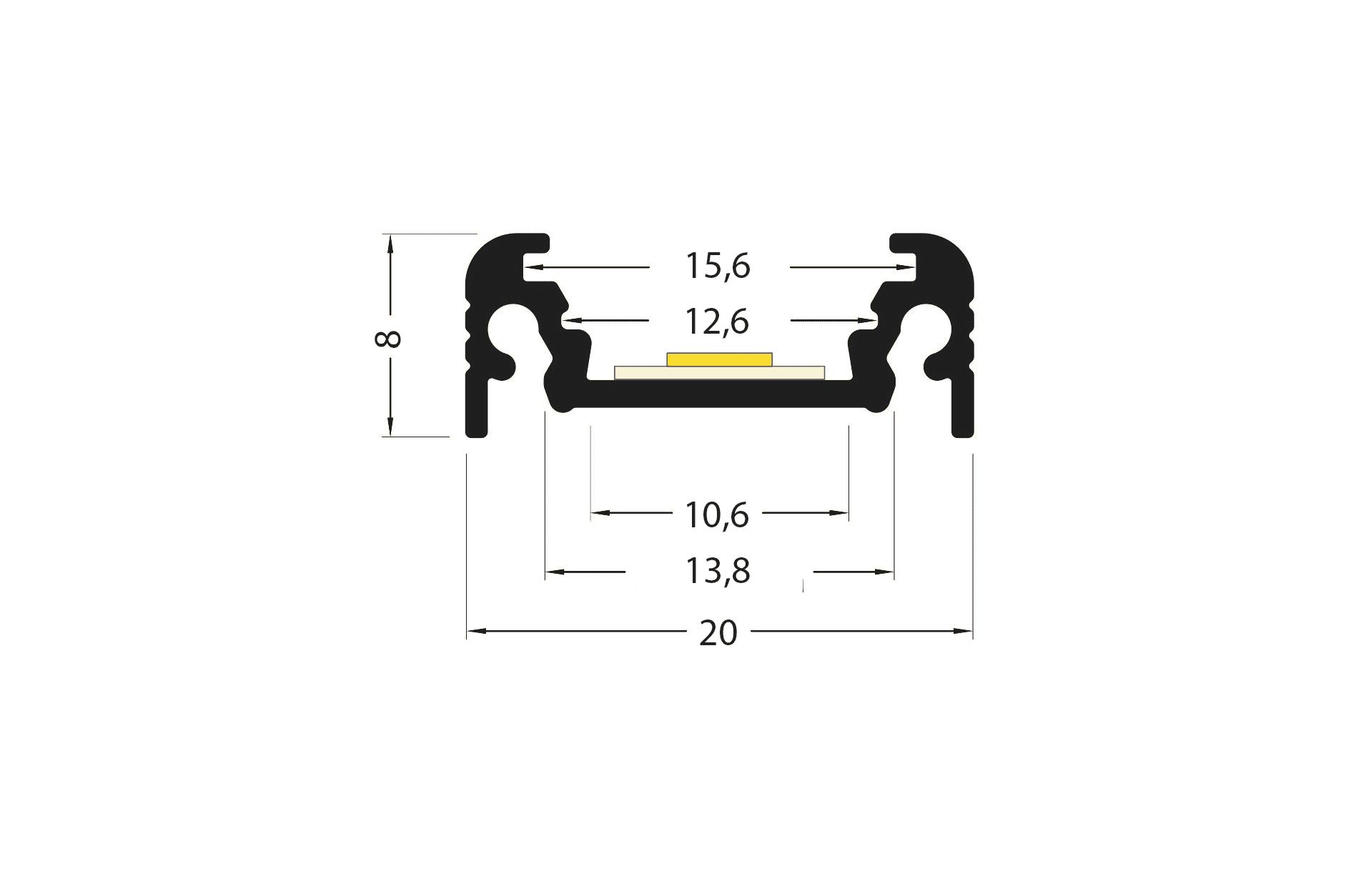 PR2015C PROFILE EN MATIERE ALUMINIUM SAILLIE DE COLORIS GRIS D'UNE LONGUEUR DE 2M AVEC DIFFUSANT POLYCARBONATE CLIPANT