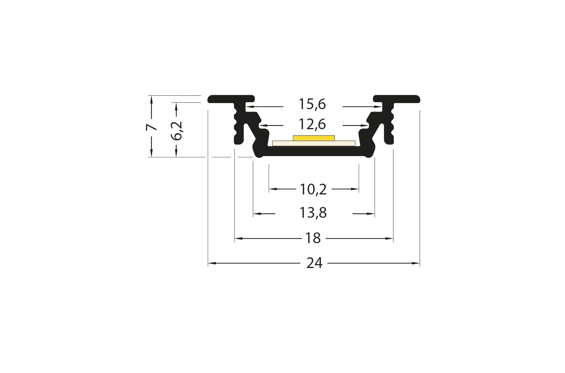 PR2016CN PROFIL ALUMINIUM ENCASTRE NOIR 2M AVEC DIFFUSANT POLYCARBONATE CLIPANT NOIR