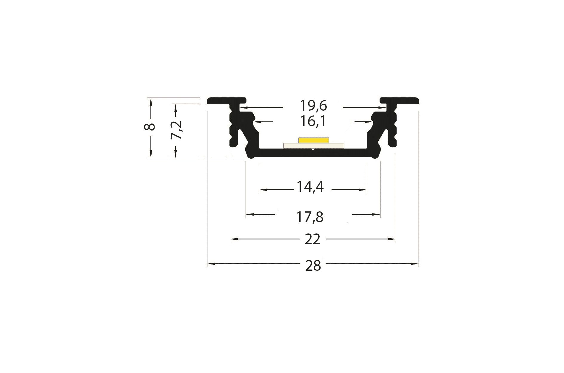 PR2017F PROFILE EN MATIERE ALUMINIUM ENCASTRE DE COLORIS NOIR D'UNE LONGUEUR DE 2M AVEC DIFFUSANT POLYCARBONATE CLIPANT