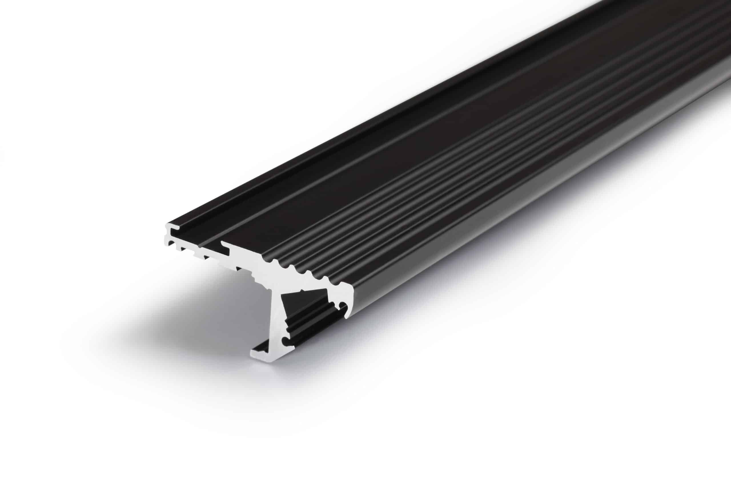 PR2018CN PROFIL ALUMINIUM NEZ DE MARCHE NOIR 2M AVEC UN ANTI-DERAPANT ET SON DIFFUSANT NOIR
