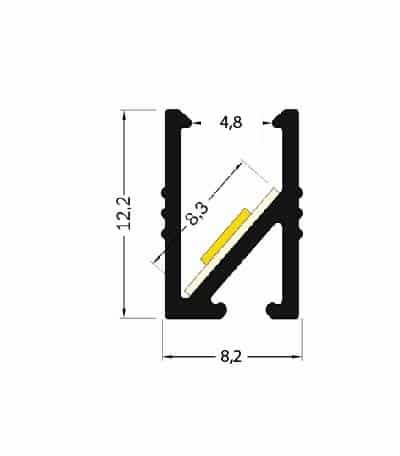 PR2019C1 PROFILE EN MATIERE ALUMINIUM ENCASTRE DE COLORIS GRIS D'UNE LONGUEUR DE 1CM AVEC DIFFUSANT POLYCARBONATE CLIPANT