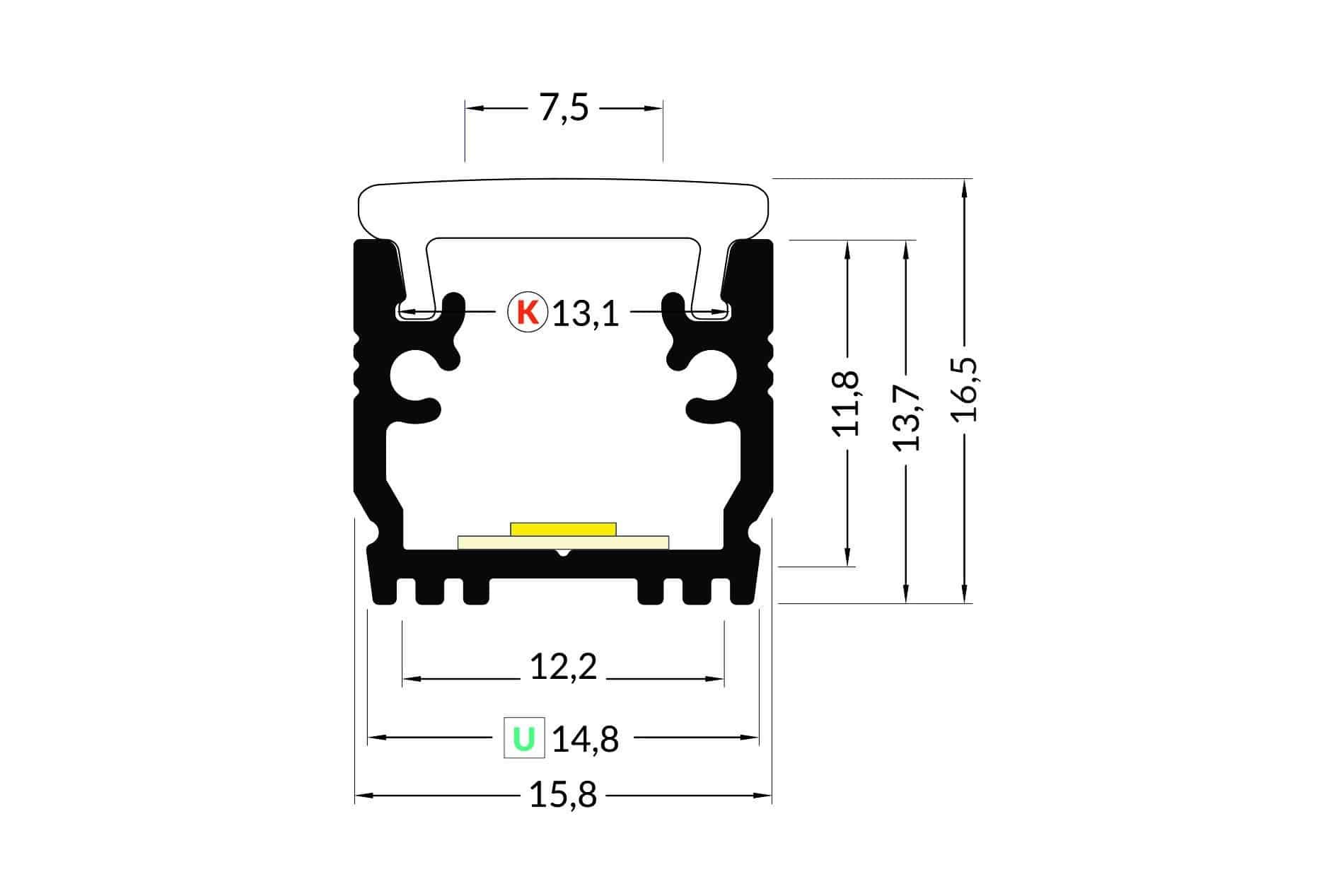 PR2020K PROFIL ALUMINIUM A INTEGRER GRIS 1CM AVEC DIFFUSANT POLYCARBONATE CLIPANT