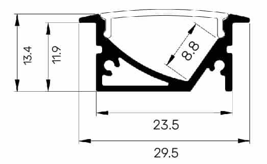 PR4019 PROFILE EN MATIERE ALUMINIUM ANGLE DE COLORIS GRIS D'UNE LONGUEUR DE 1CM AVEC DIFFUSANT POLYCARBONATE